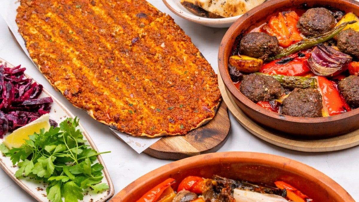 Cheese, beef sausage and cured beef topped with sesame seeds£16.89Popular50% offLahmacun