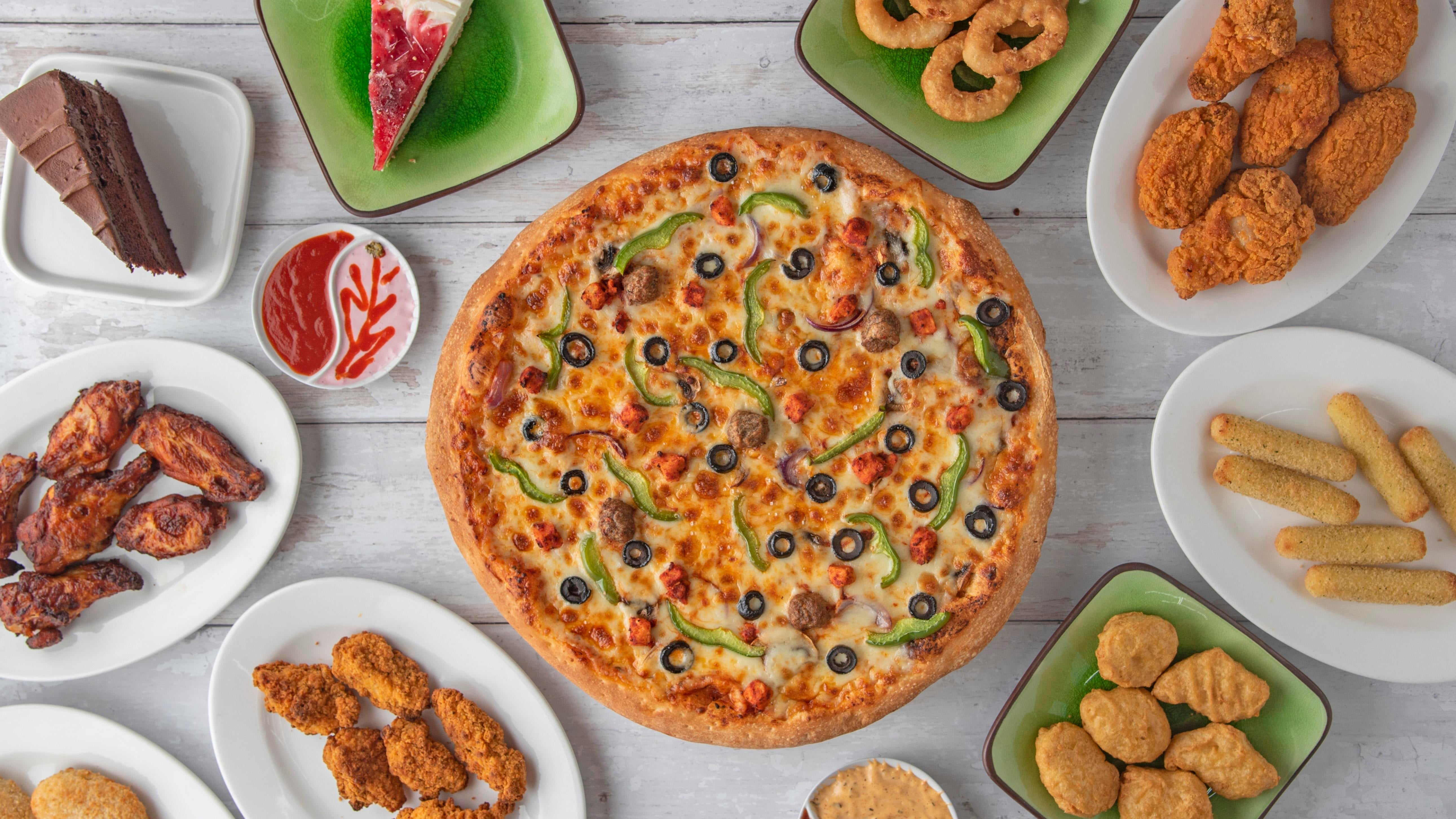 BBQ Base topped with BBQ chicken, sweet corn , Green peppers.£18.99HalalChicken Feast