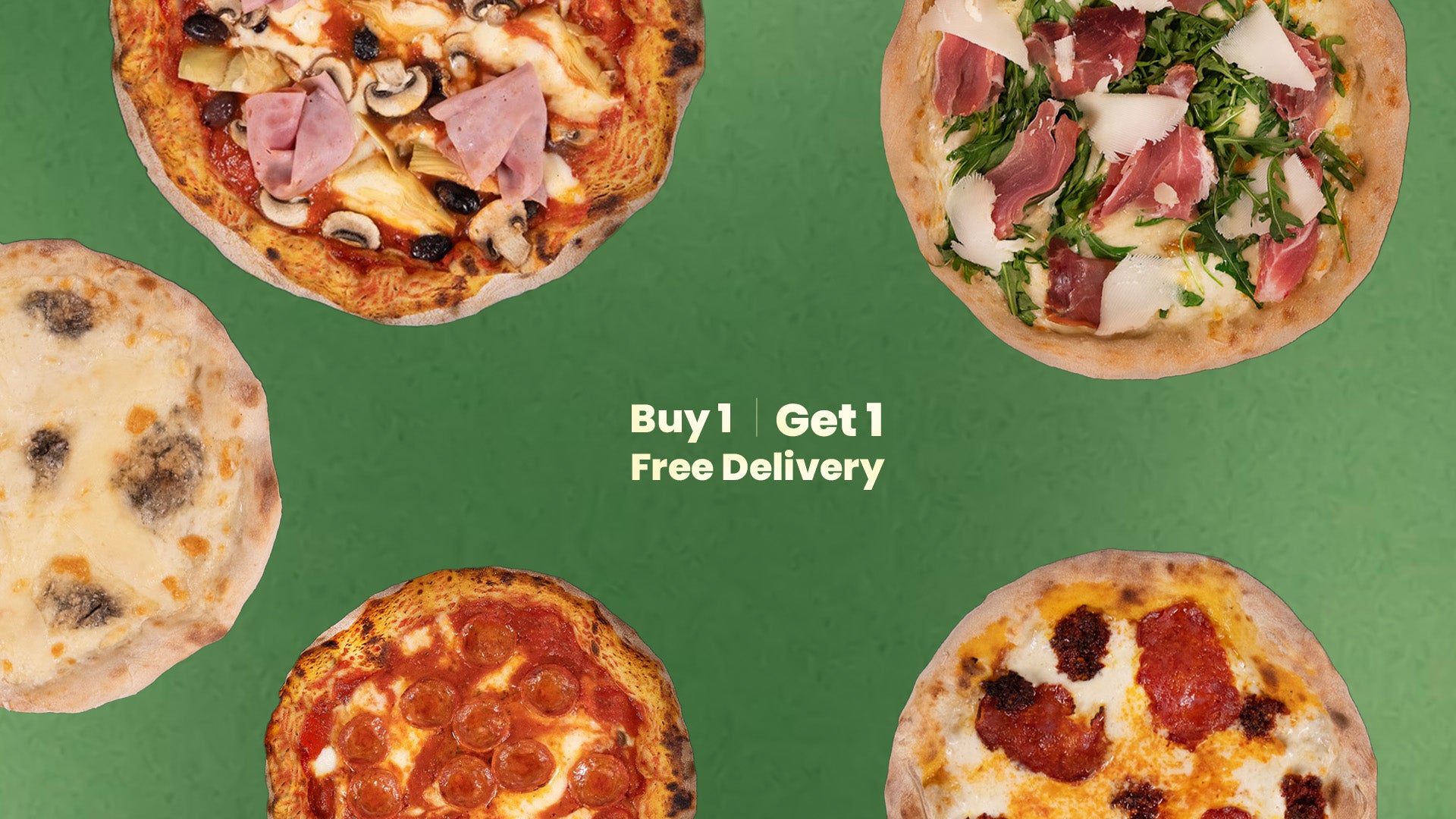 San Marzano pizza sauce, Fiordilatte mozzarella, prosciutto, mushrooms on golden, stone-baked crust680 kcal