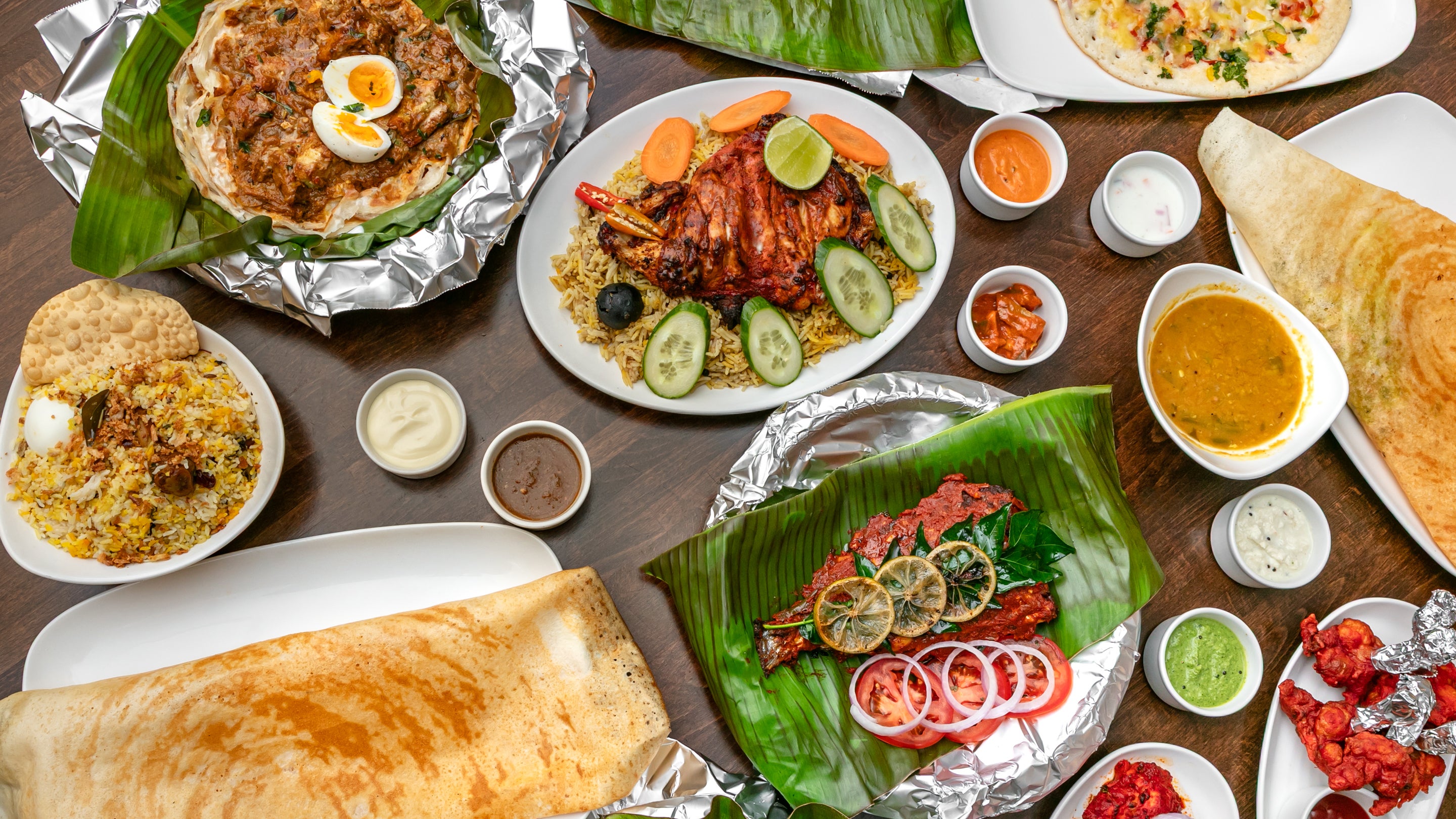 A popular South Indian street food where flaky shredded parottas are cooked in a spicy masala with chicken and eggs wrapped in banana leaf.£13.99