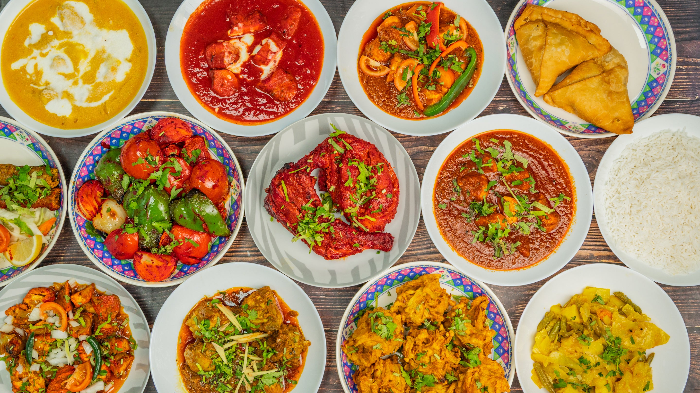 Selections of meat: chicken, prawn, king prawn, vegetable, keema, meat, lamb tikka & chicken tikka.