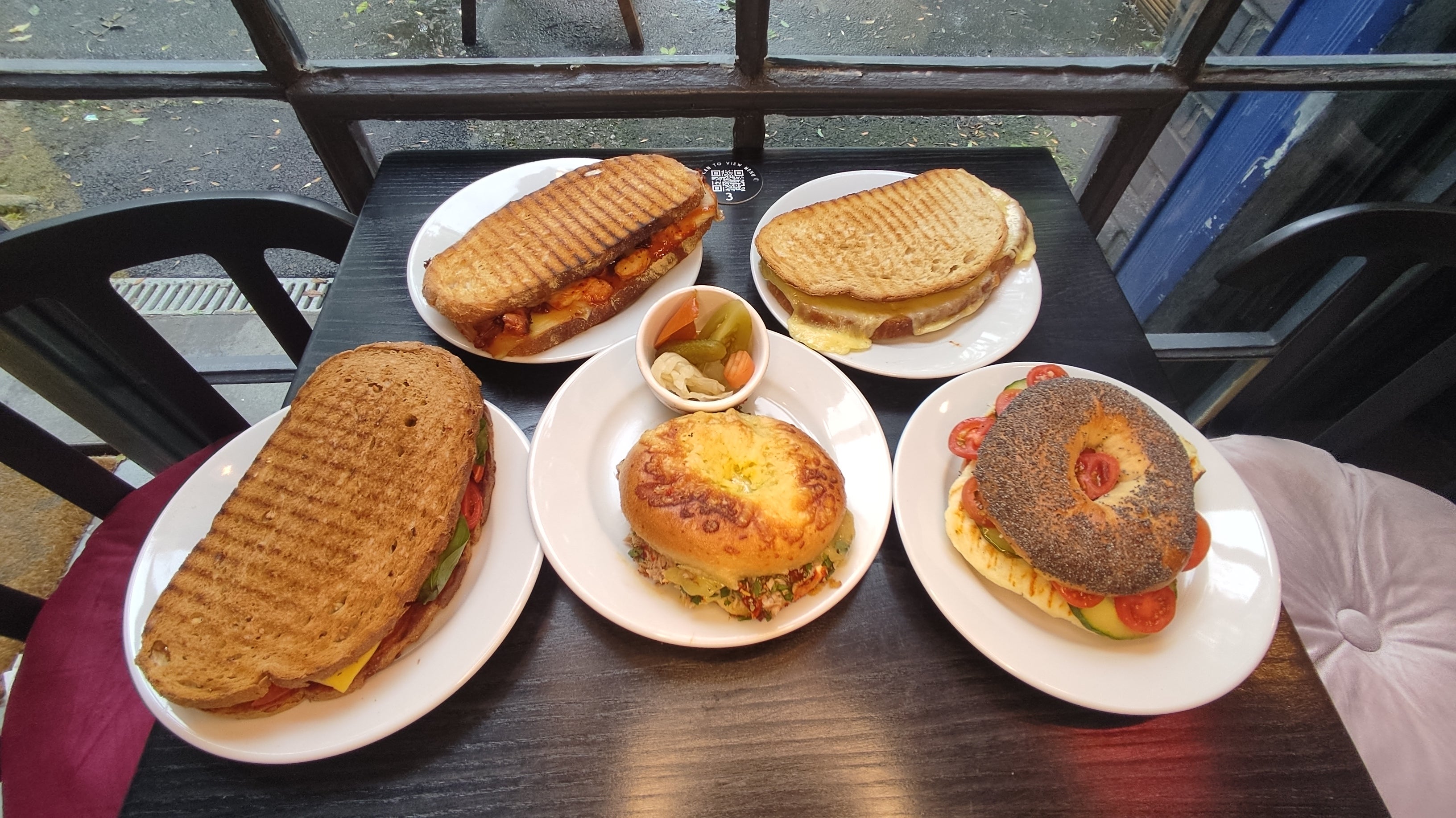 What more can a person ask for than a hot Halloumi cheese toasted bagel to fill the void of a good work day lunch? A poppy seed bagel, tomato, cucumber and harissa pepper (non-spicy/spicy)£6.69