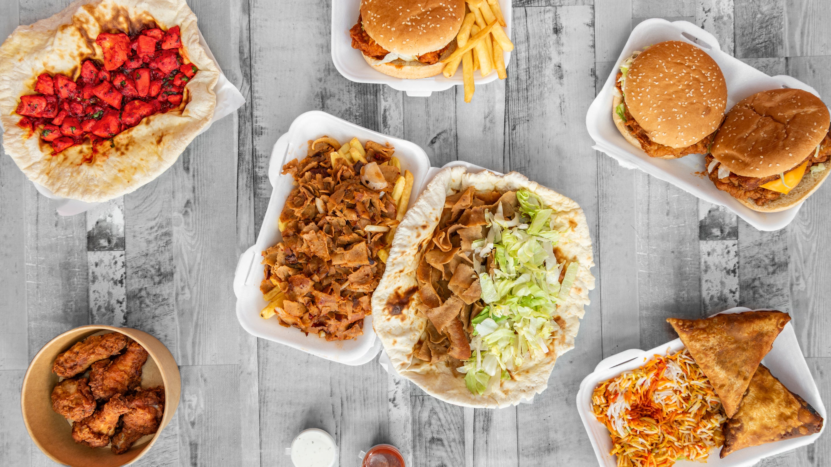 Munchbox- 6 Wings- Chicken tikka- Lamb Donner- 2 Burgers ( chicken fillet / cheese burger / extreme spicy chicken burger.- Chips- 6 x Onion Rings- 2 Cans2 Family Mini Mix- 2 Fillet Burgers, 4pcs Chicken, 2 Reg Fries and 6 Wings£64.97