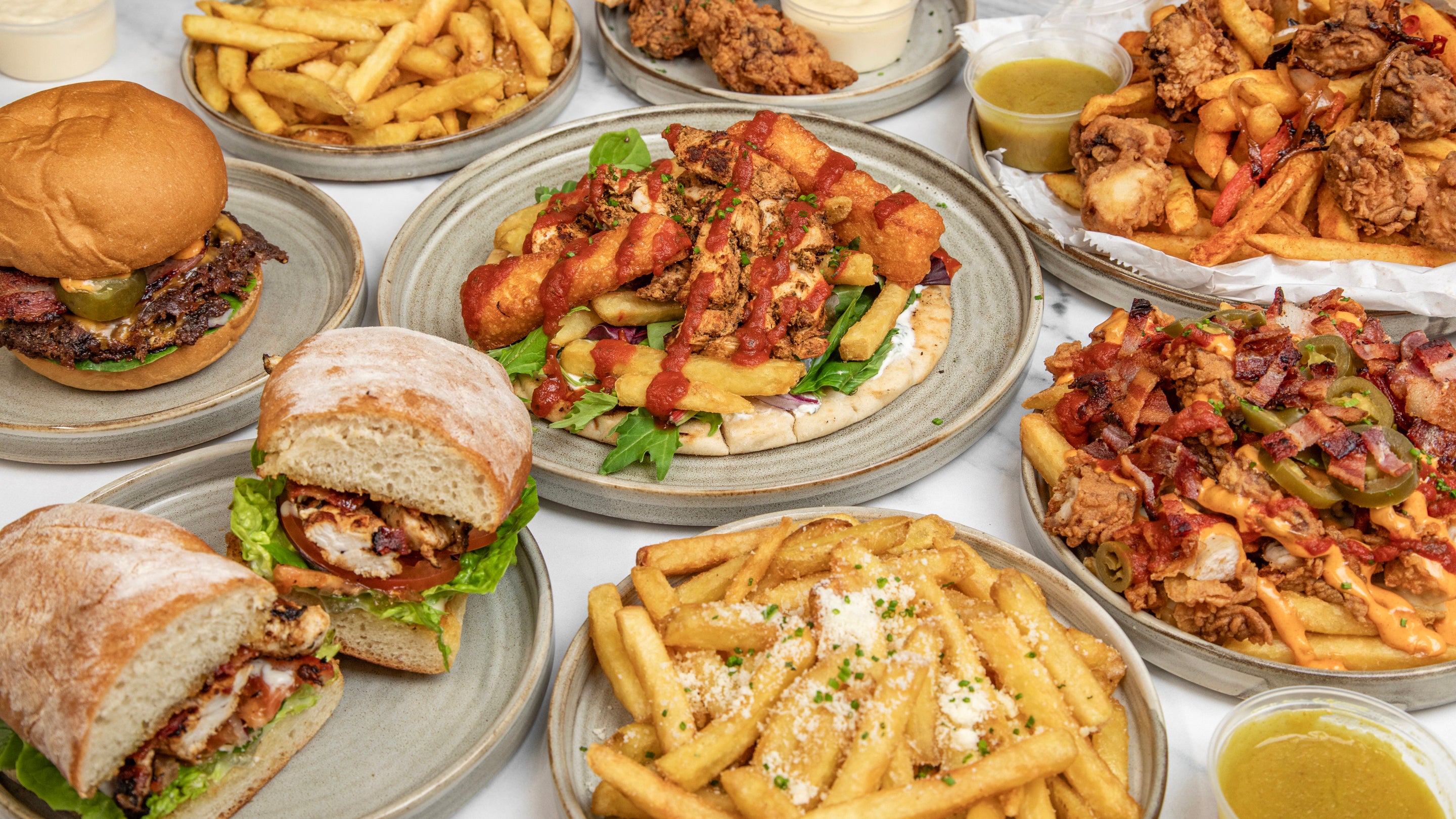 NYC inspired smashed patties & fried buttermilk chicken. Add fries & sides.