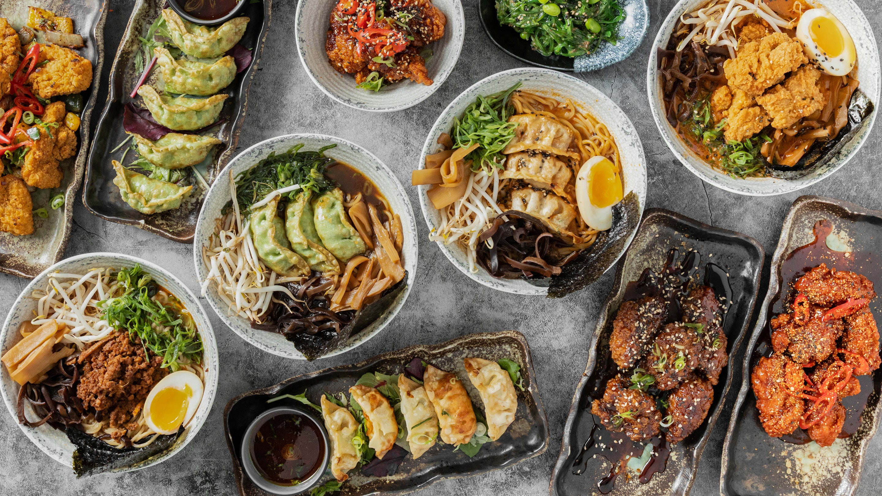 Sweet and savoury stir fried noodles, peppers, red onions, carrots, Chinese leaves, spring onions, red pickled ginger & sesame seeds.£14.00Veggie Gyoza Ramen