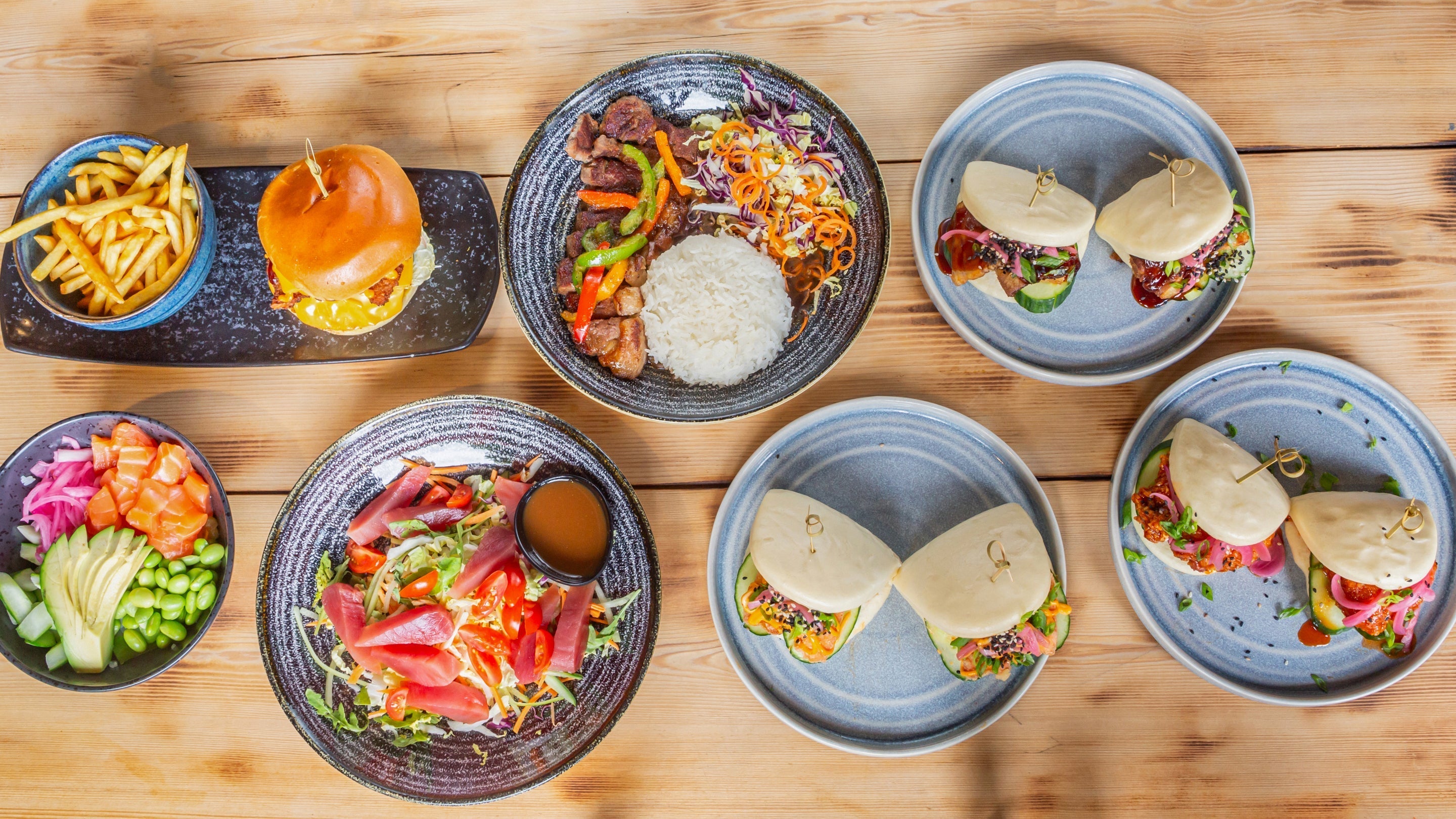 Each poke bowl come with cucumber, Moki (Edamame Beans), Pickled onion, avocado, kaiso & sushi rice£9.95