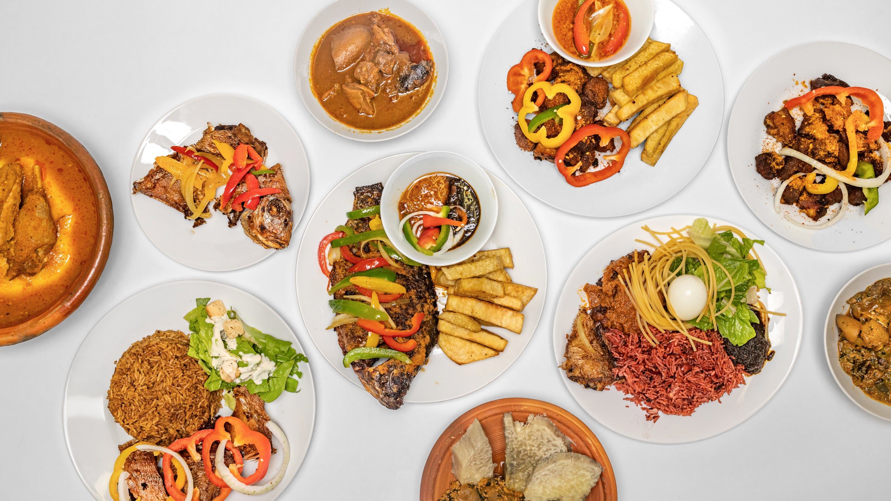 Served with fried fish, eggs, tsofi, gizzard, and peppers£48.00Rice Platter with Chicken