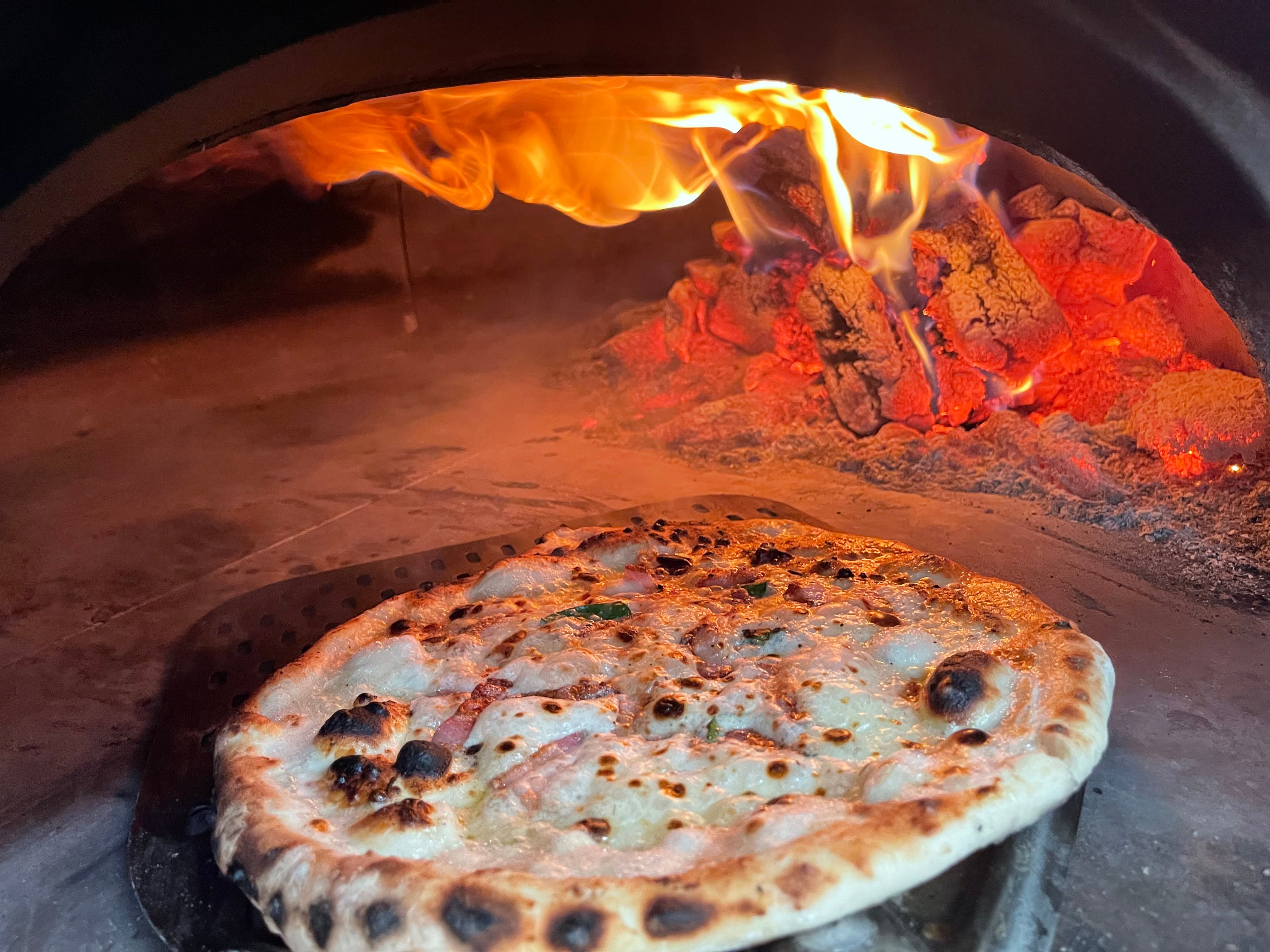 12" Neopolitan Pizza made in our wood-fired pizza ovenFree delivery