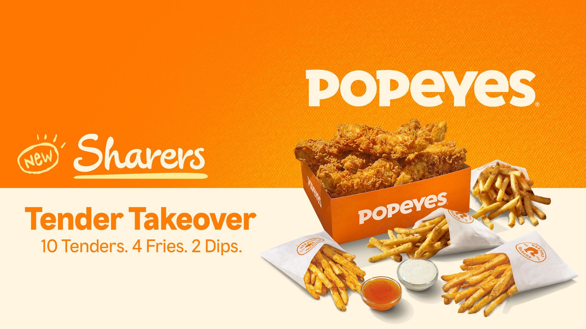 10 Shatter Crunchin' Tenders, 4 regular Fries & your choice of 2 Dips.£24.9910 Tender Takeover with Sides & Drink