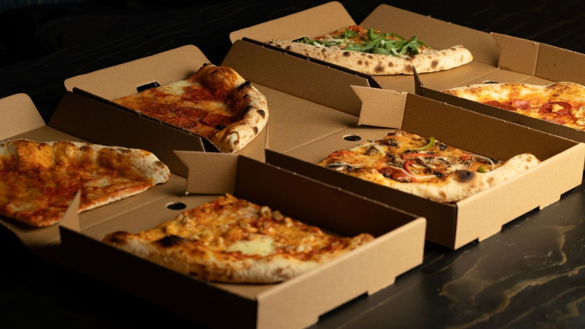 Pepperoni, ham, and garlic chicken. A quarter slice of 14 inch thin and crispy stone baked Italian style pizza, with san marzano DOP tomato, mozzarella, basil, and oregano.£4.50Misto Verdure Pizza