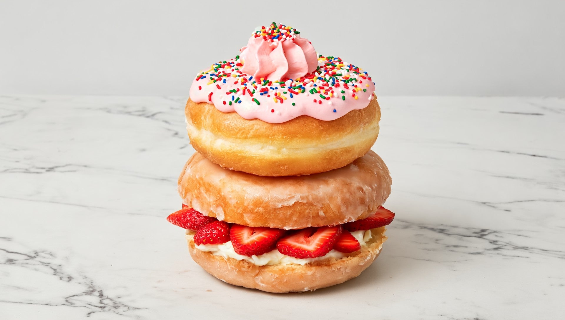 Delicious sweet doughnuts filled or topped with luxurious creams, fruit, and indulgent spreads.