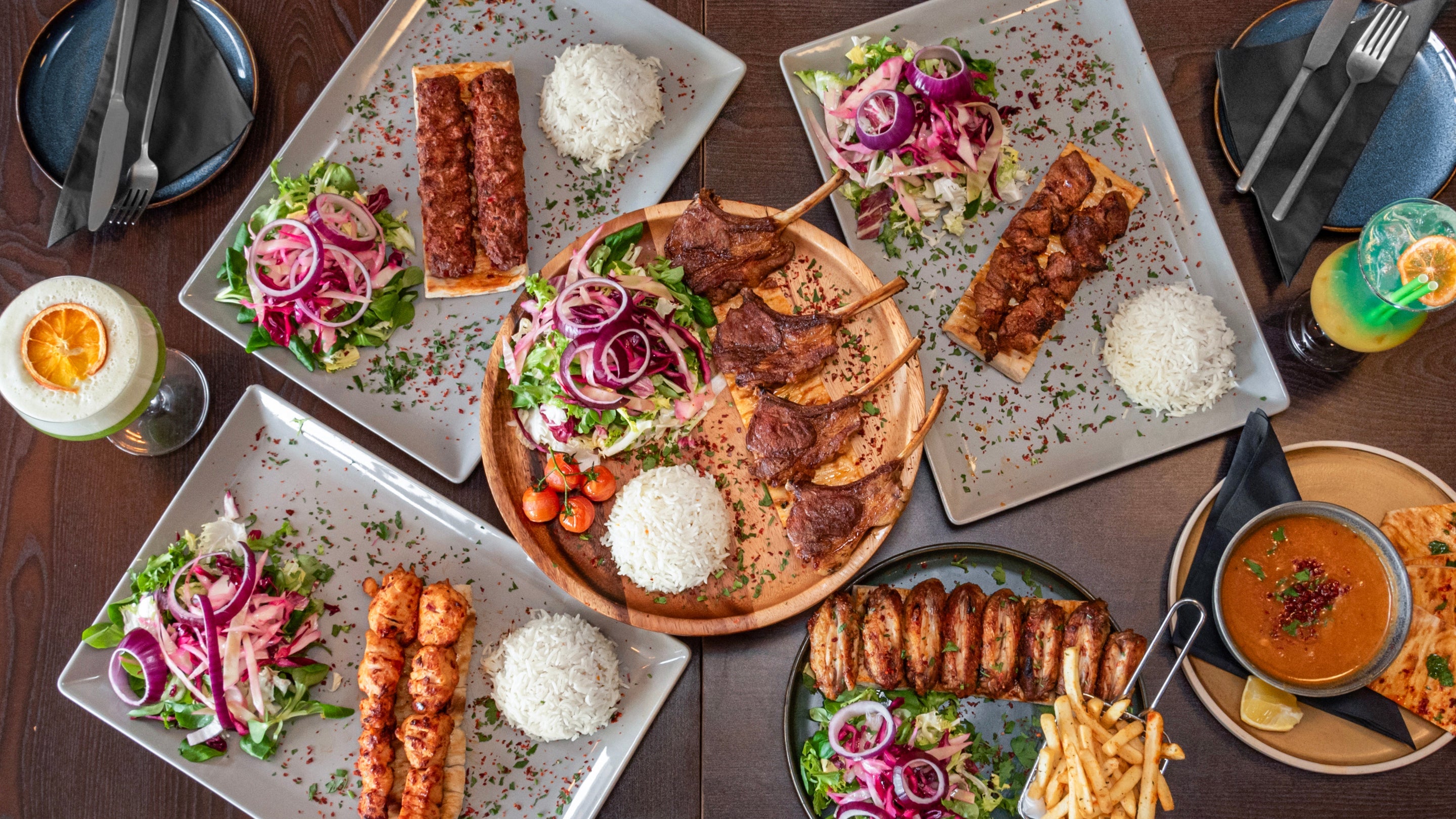 A mix of ribs, lamb shish, chicken wings. chicken shish. Served with rice, salad and house sauce.£37.9520% offSharing grill for 4 to 5