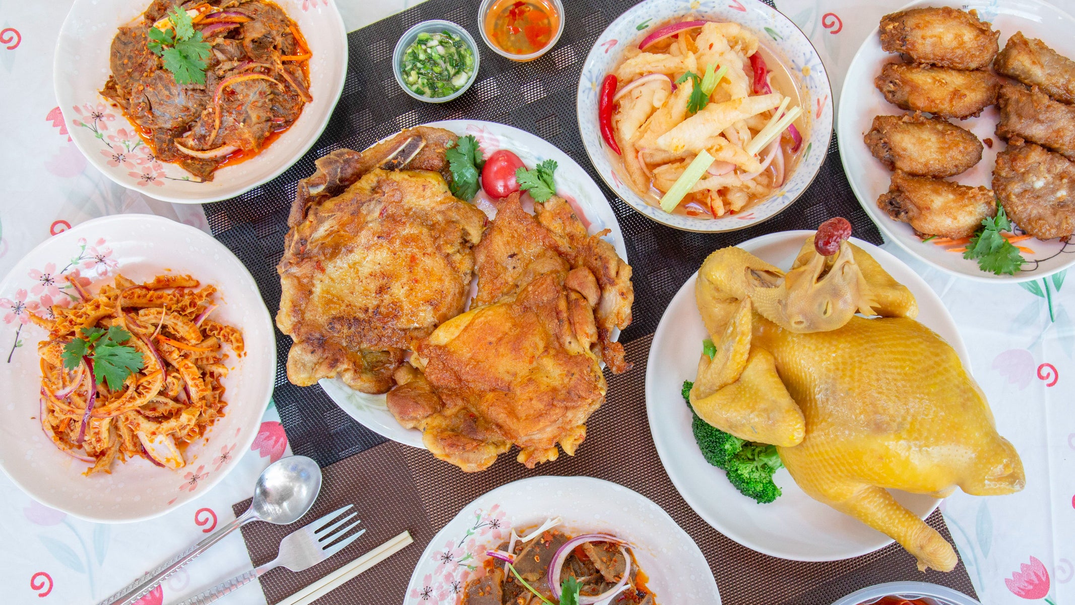 1/2 Crispy Aromatic Duck, Crispy Seaweed, Curry Samosa, Vegetarian Spring Rolls, Spare Ribs with Salt & Chilli, Szechuan Chicken, I Stir Fried Mixed Vegetable in Black Bean Sauce, Kung Po Chicken Beef in King Do Sauce, 2x Chicken Chow Mein (S), 2x Yung Chow Fried Rice (S), 2x Prawn Crackers£50.50