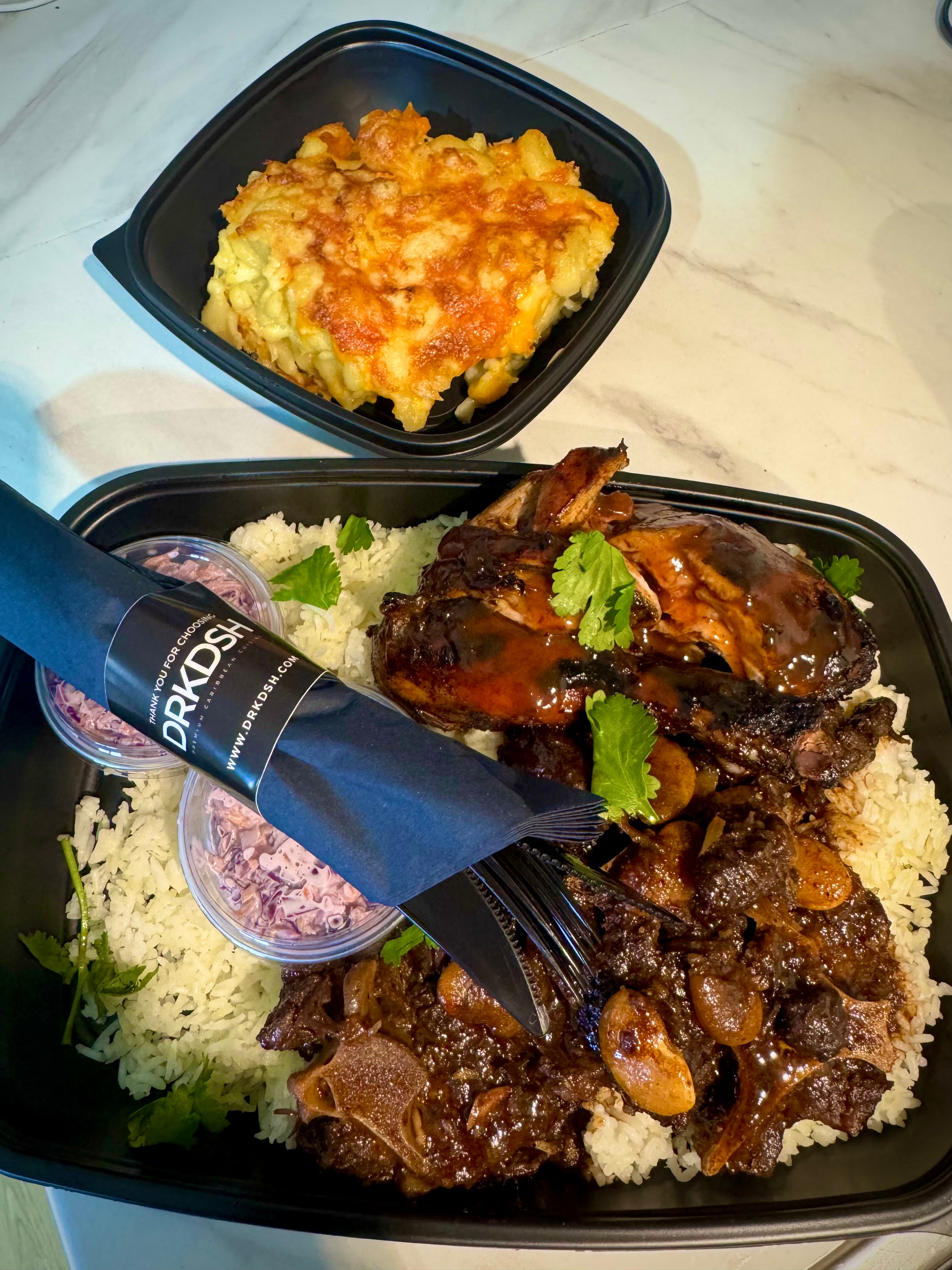 Premium Caribbean Cuisine حلال Bold, elevated Caribbean flavour, crafted the DRKDSH way. From flame-fired jerk chicken and slow-braised oxtail to vibrant plant-based coconut curries, every dish is cooked with layered spices, premium ingredients, and served with intention. Our meals come in separate containers for a refined dining feel, while our OG Feast Duos pack abundant classics with sides and a drink for serious appetites.