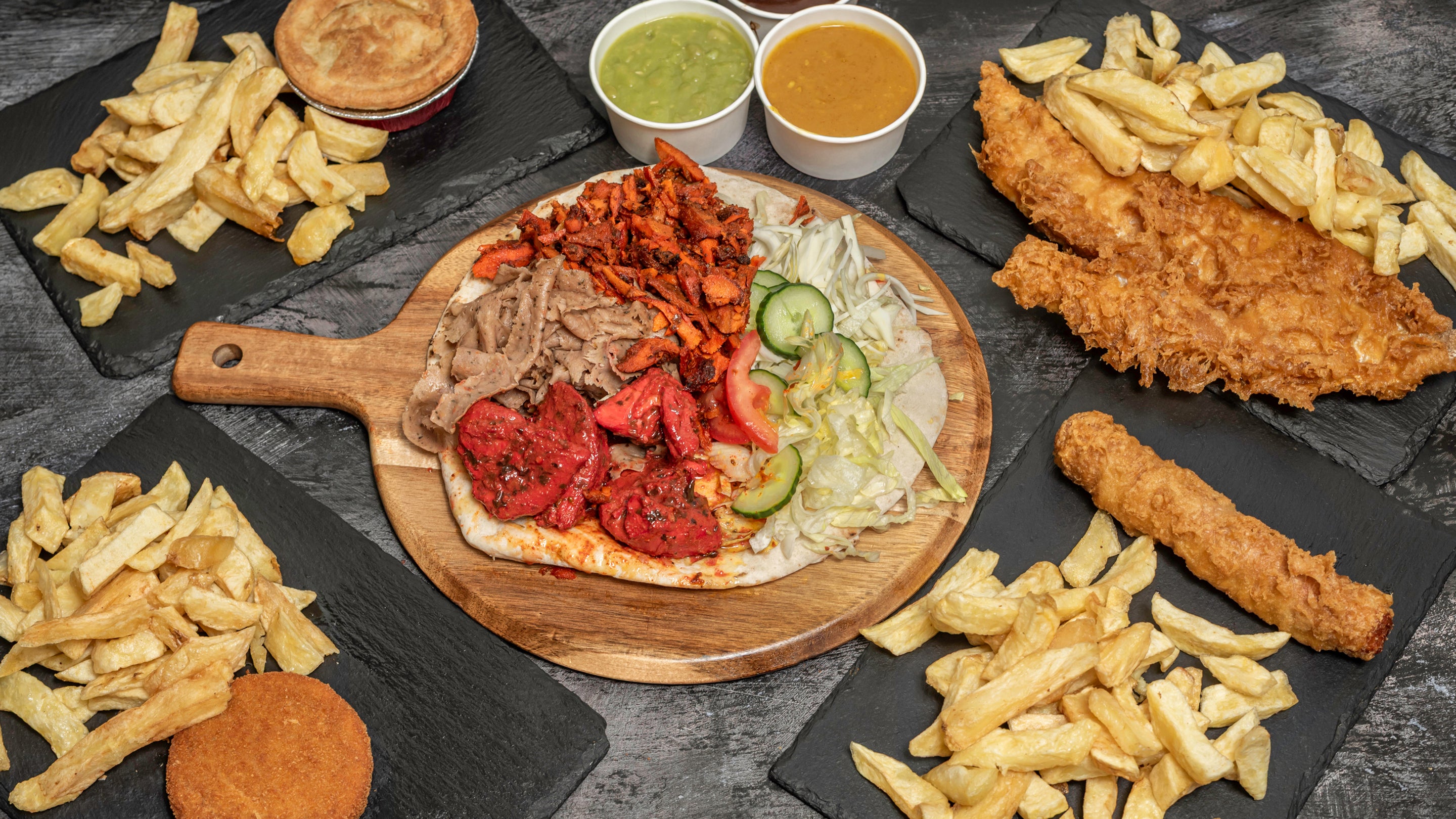2 bettered sausage 2plain sausage 10 chicken nuggets 10 onions ring trey doner meat 6 fish bites 2 fish cake on cheesy chip1.5l bottle Pepsi Max£25.99Meal Deal 4