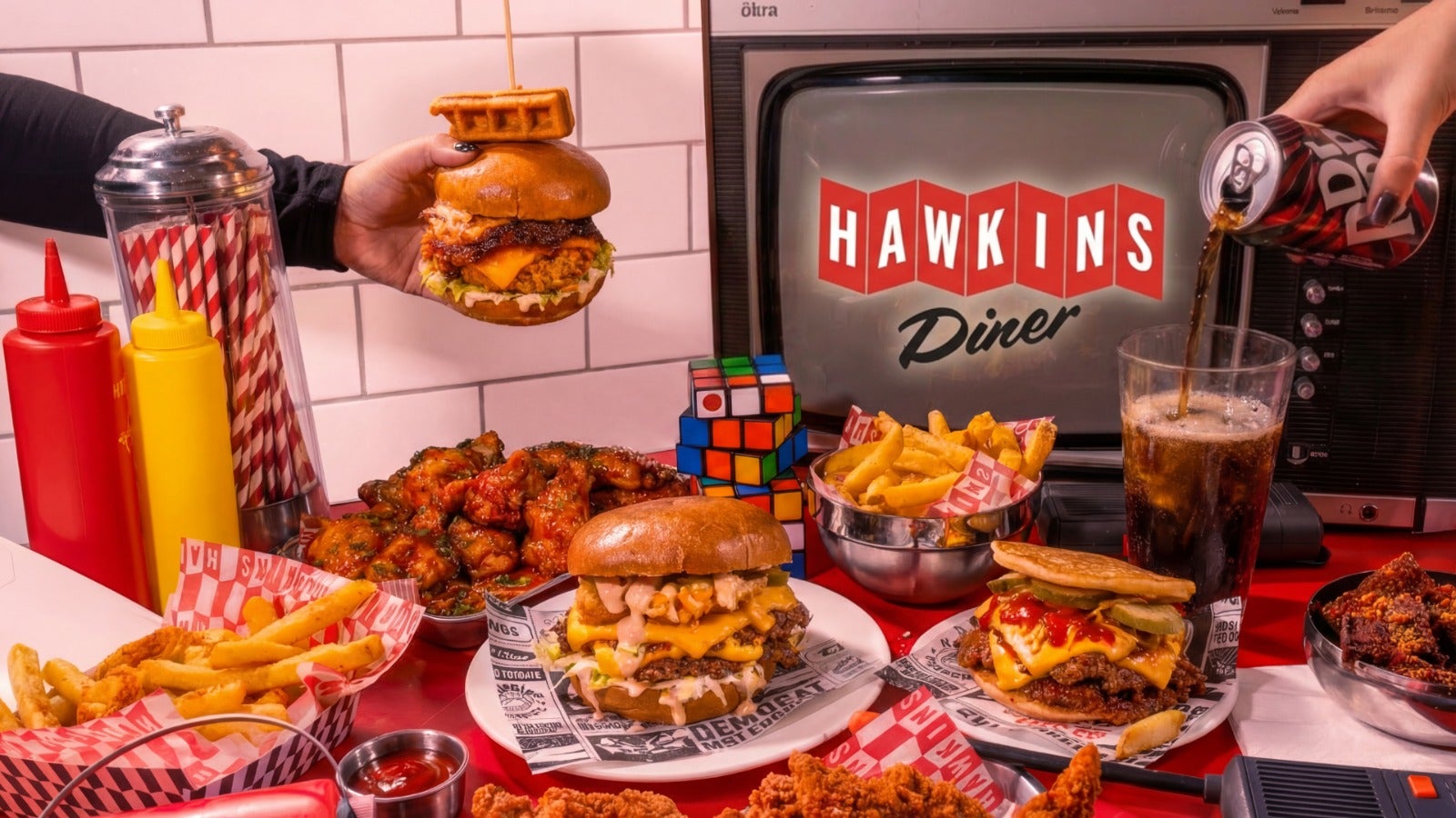 Juicy burgers, fiery tots, and diner classics turned upside down. Comfort food with a twist, created in collaboration with Netflix and inspired by Stranger Things. Delivered from Hawkins to your door!