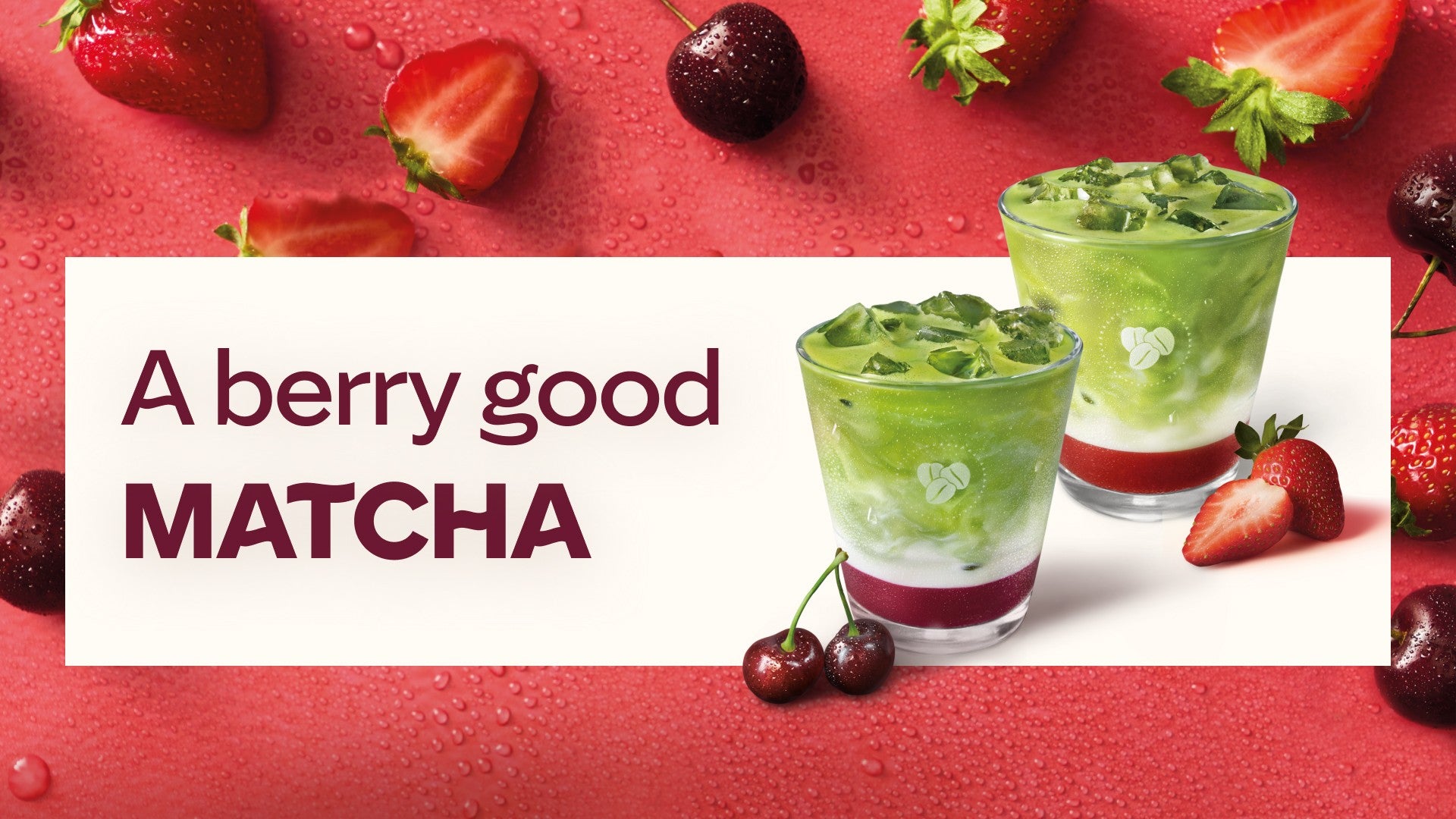 Sweet Ube flavour hot chocolate with a dreamy purple hue, a creamy-sweet vanilla flavour, and a slight hint of nuttiness. For full allergen and nutrition information, please visit https://www.costa.co.uk/menu.£5.70Cherry Vanilla Iced Matcha