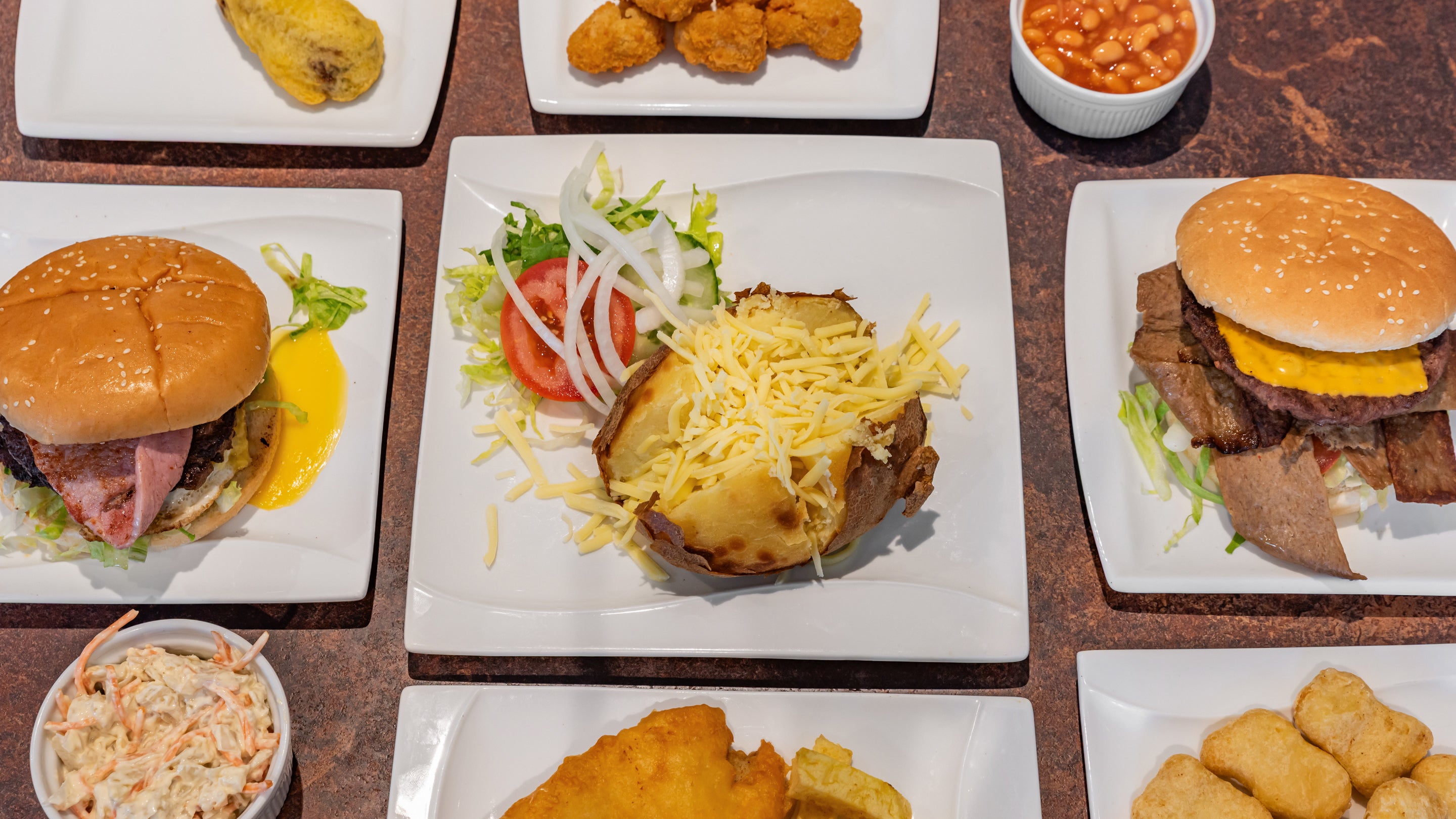 Beef burger in batter£4.10Egg, bacon cheese burger