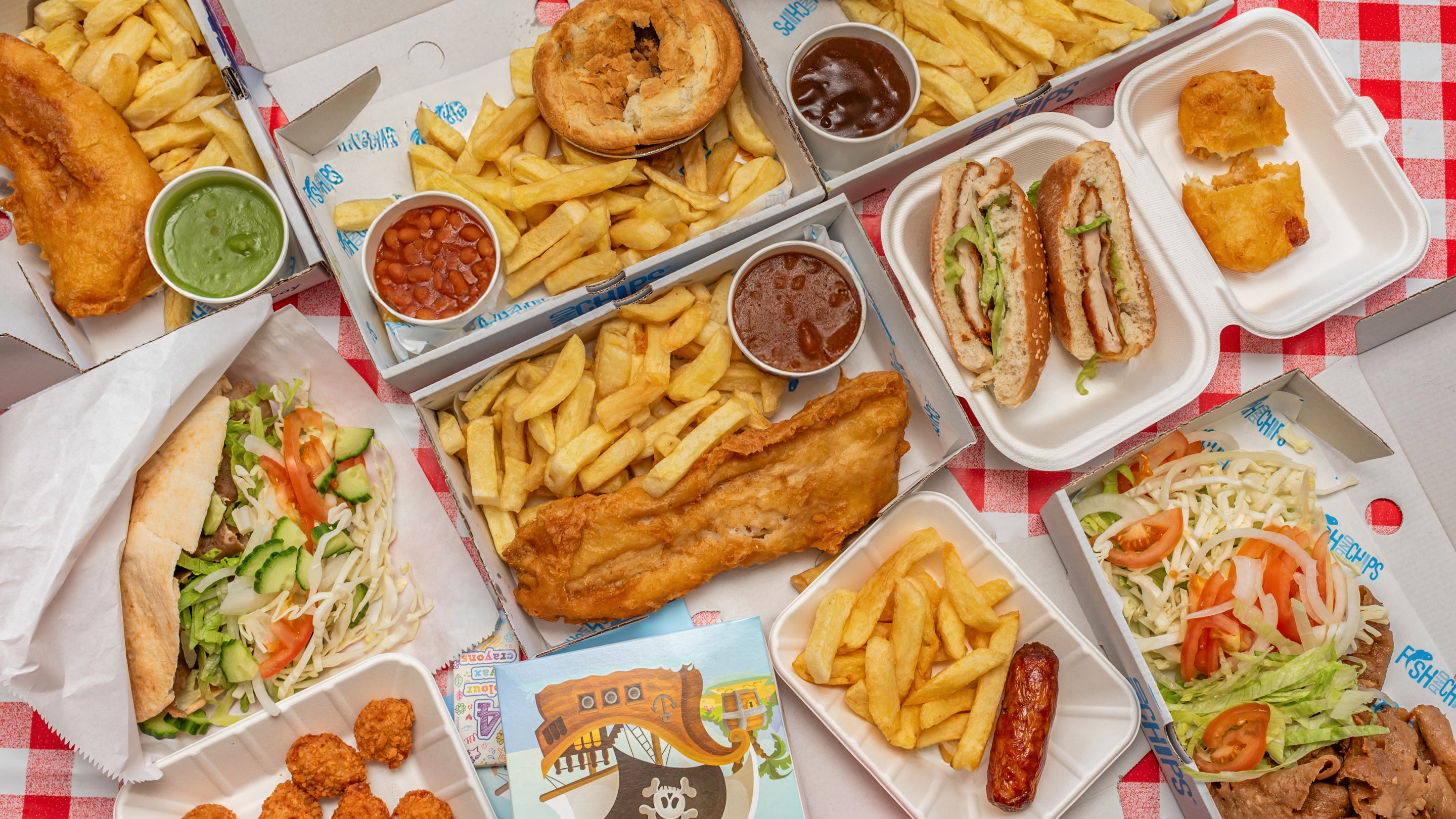 A classic chippy favourite — your choice of juicy pork sausage (plain or battered), served with a generous portion of freshly cooked chips.Crispy, comforting, and full of flavour. Choose curry sauce, gravy, beans, or mushy peas to make it your own£8.30Popular