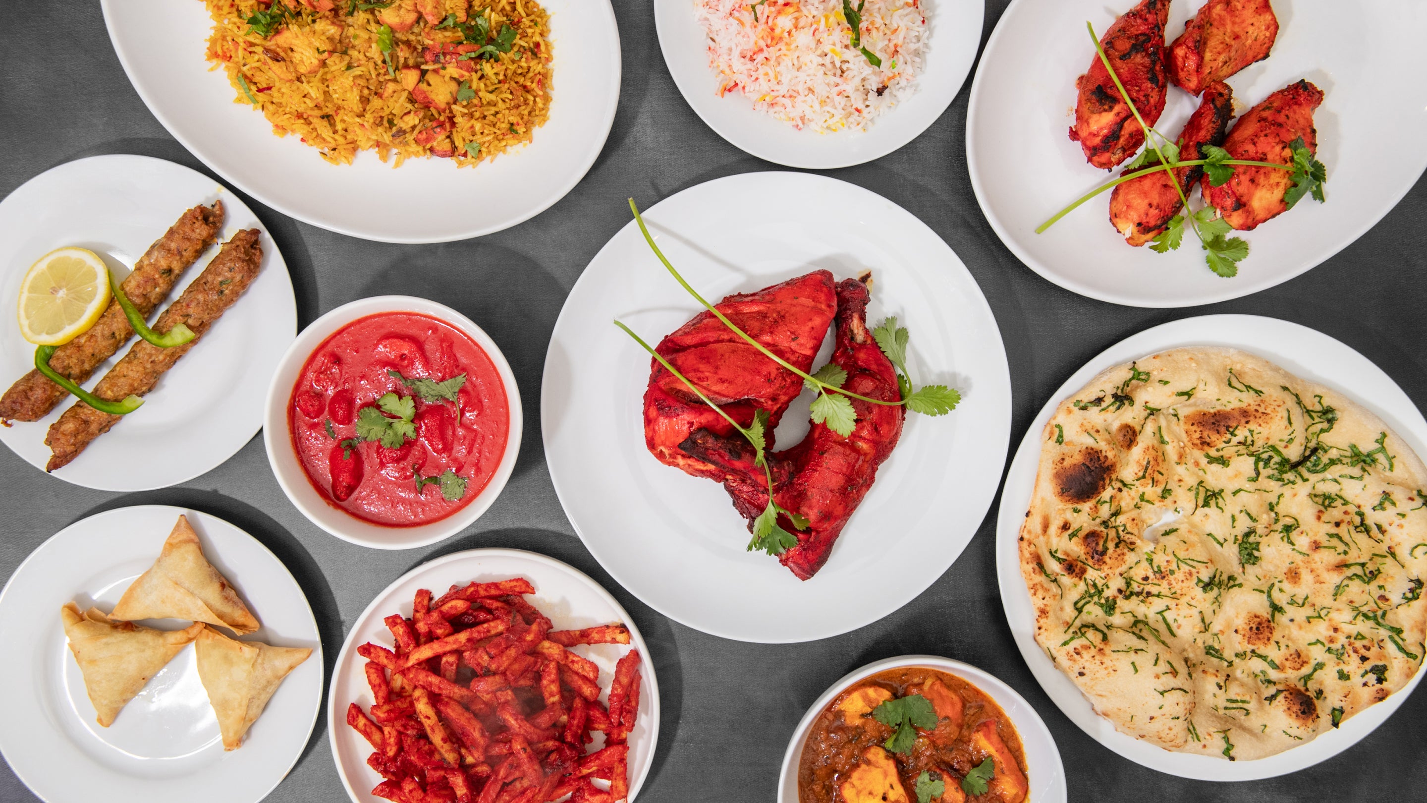 Chilli chicken puri, sheek kebab, onion bhajis, meat samosa, chicken korma, chicken tikka masala, chicken balti, lamb rogan josh, saag bhaji, bombay potato, 2 naan breads, popadoms, mint, onion & mango chutneys & 2 pilau rice£65.00