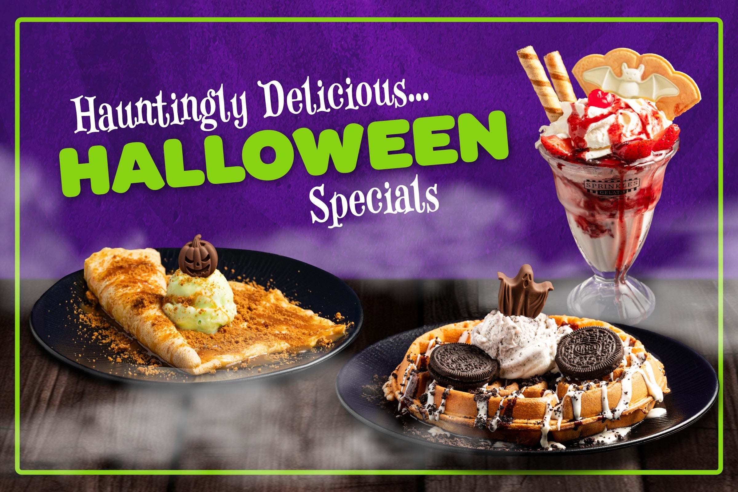 - NEW! Toffee Apple Our bewitching Green Apple sorbet with toffee sauce, crushed Biscoff and a spooky milk chocolate Halloween topper.£13.75