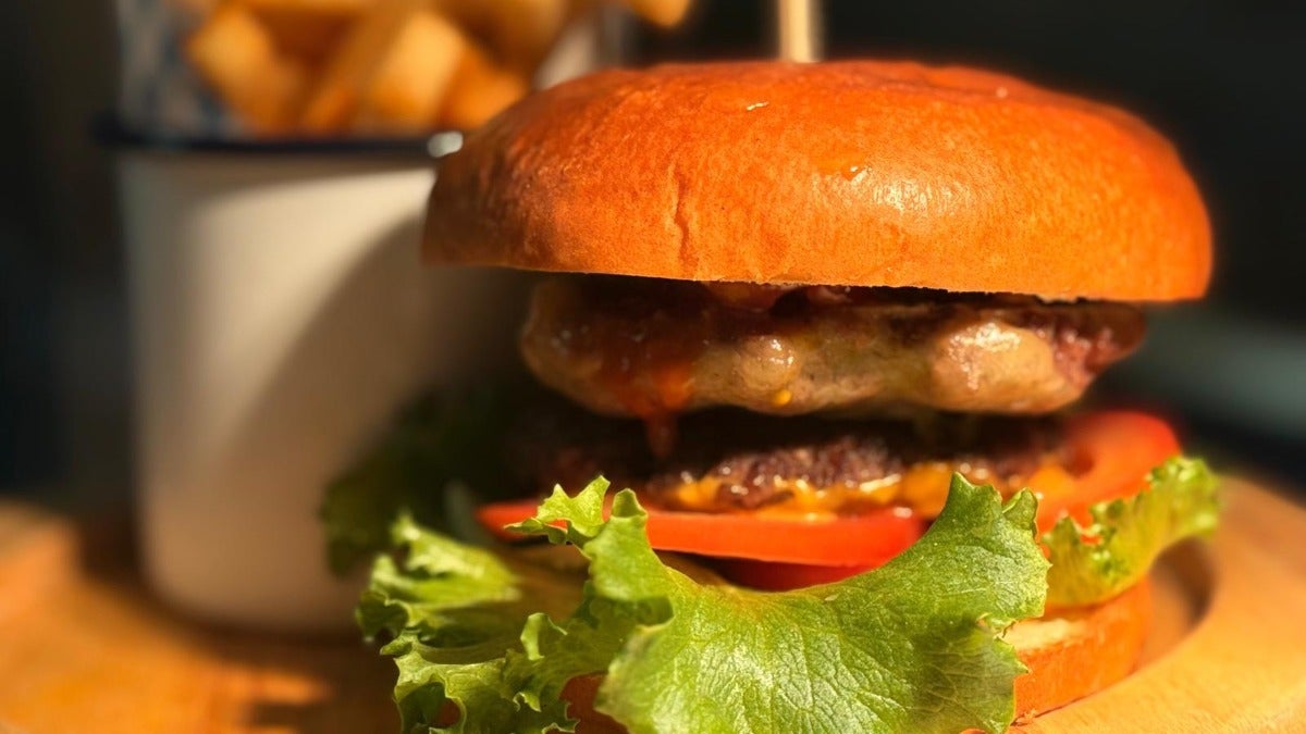 Golden-seared halloumi stacked on soft brioche with fresh tomato, shredded lettuce, pickles and a vibrant chilli jam with friesVegetarian£11.00