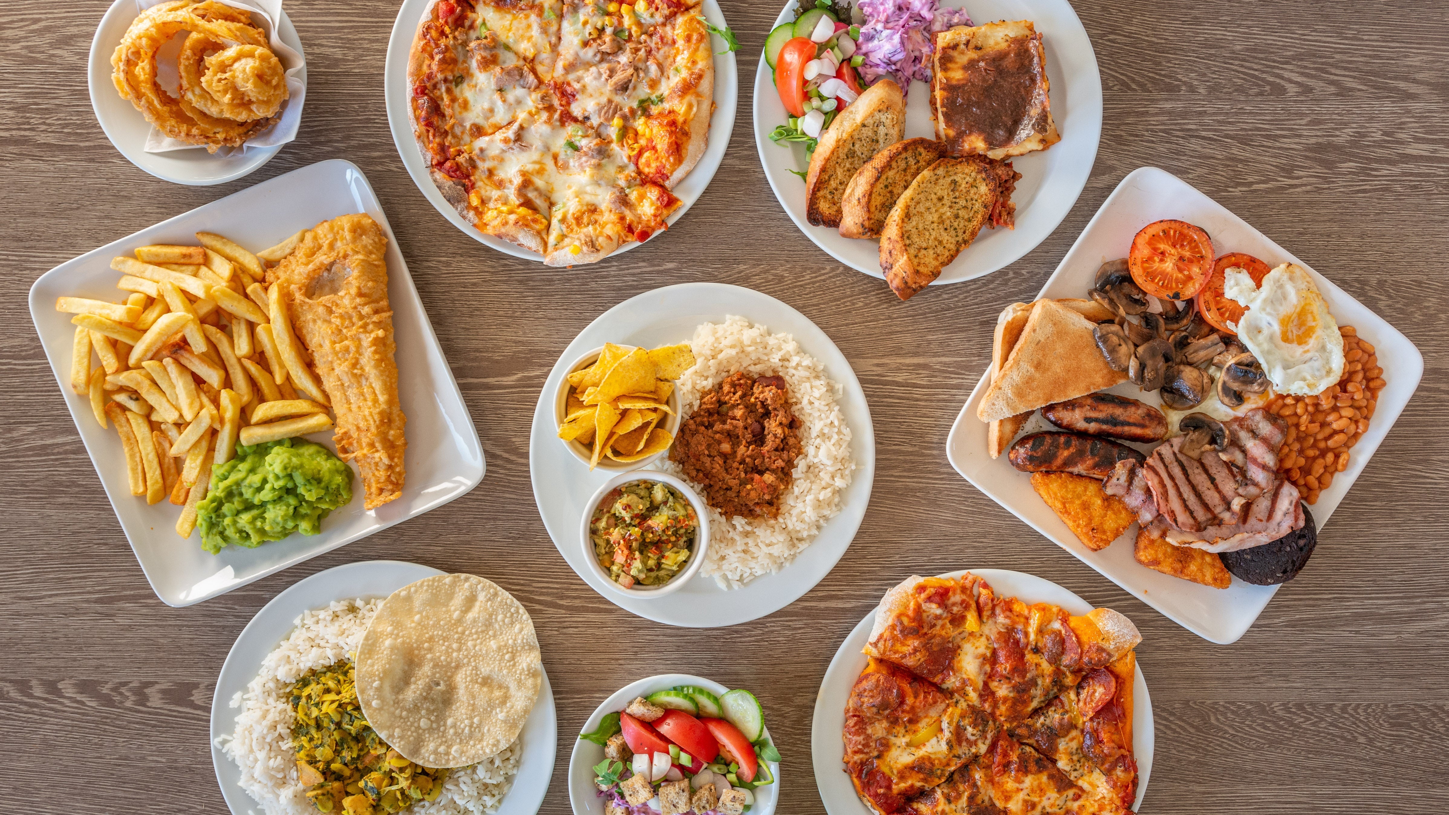 6x Bacon , 6 x Sausages , 8 X Eggs , 6 x Hashbrowns , Tomatoes , Beans , Mushrooms , Blackpudding , 6 slices of toast with butter + Chips + 2 caffe latte + slice of chocolate fudge cake£39.50🎄 Christmas Ultimate Breakfast Treat
