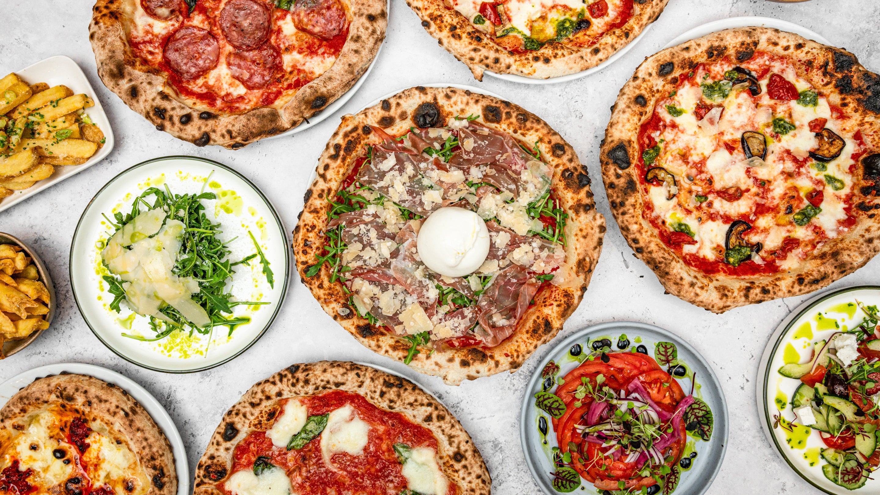 Fior Di Latte, Spicy Salami, Fresh Chilli, Red Onion, Feta Cheese, Oregano£17.50Ortolana (Ve)