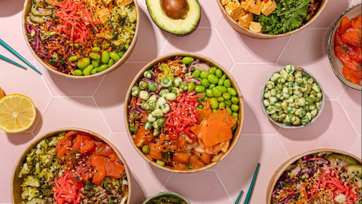 Our classic sashimi fish poké bowls. Marinated sashimi served on a bed of sushi rice, brown rice or slaw, along with our made-in-house sauces and pickled, fresh veg and crunch.