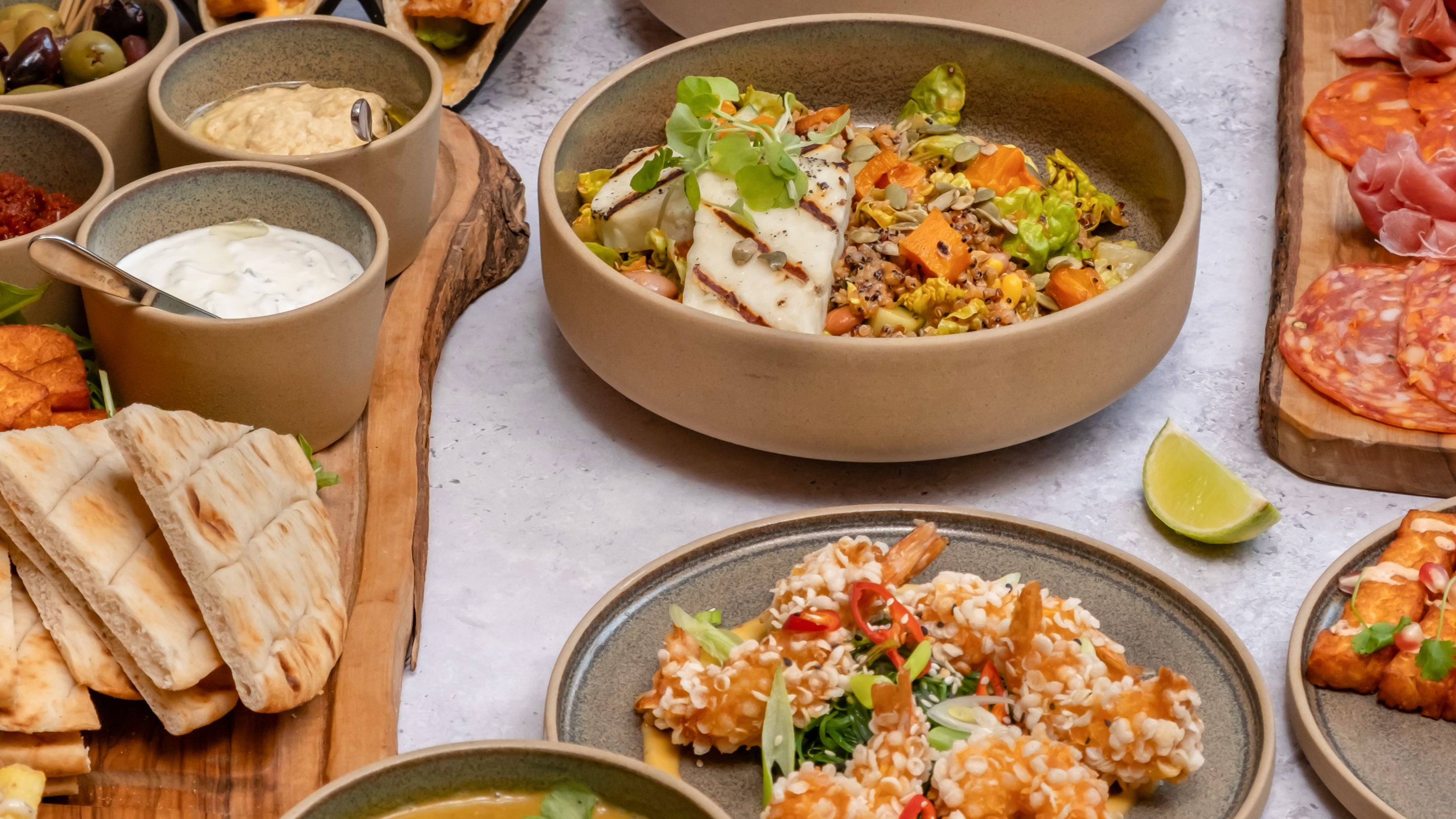 Selection of cured meats, sun-dried tomatoes, pickles, grilled sourdough.£24.00