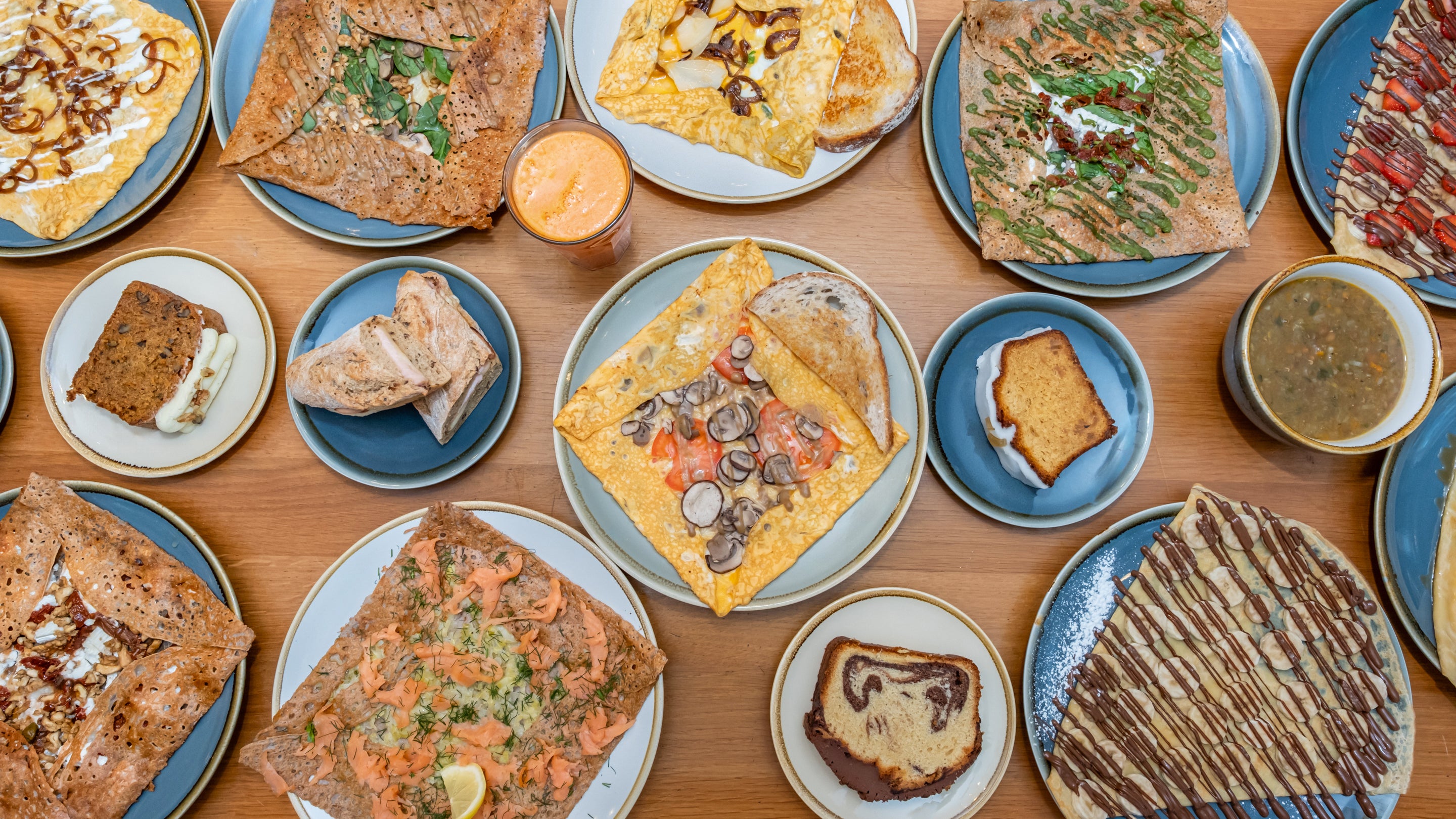 French crêperie specialty Coffee shop. Specialised in traditional crepes and Galettes (made from buckwheat) La Bretagne. With a little twist, our healthy organic omelettes are cooked with less than a drop of oil. Our speciality coffee is sourced from Vagabond roasted in London served with best quality alternative non dairy milks.[ We also offer a selection of french pastries, baguettes and lovely vegan gluten free cakes along with freshly pressed juices.