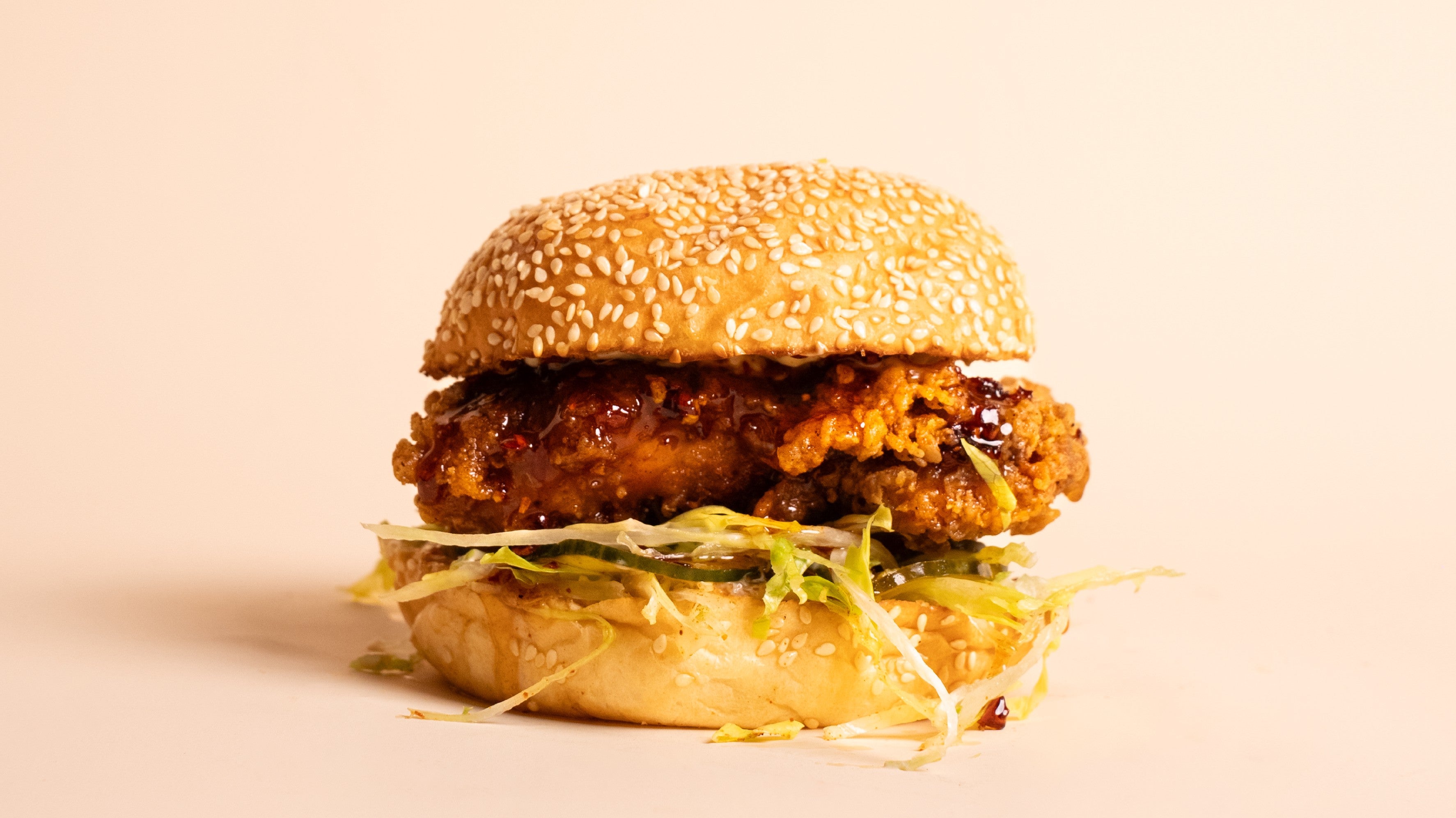 High Welfare Chicken, fried in our 20Ft Spice mix to crisp perfection, served in a demi-brioche sesame coated bun.