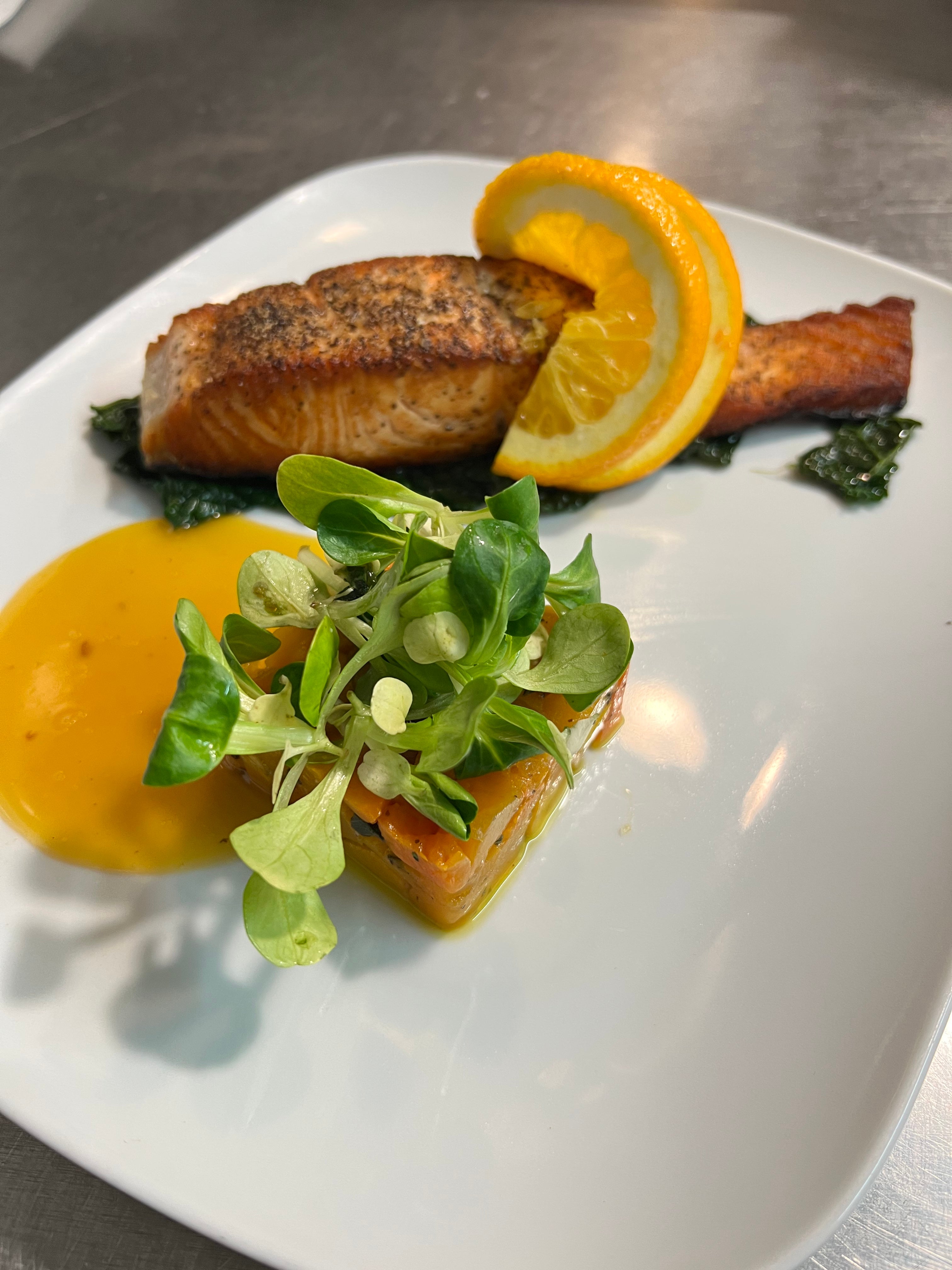 Pan seared sea bream, served with a tomato and herb salad.£19.95Pan seared salmon fillet
