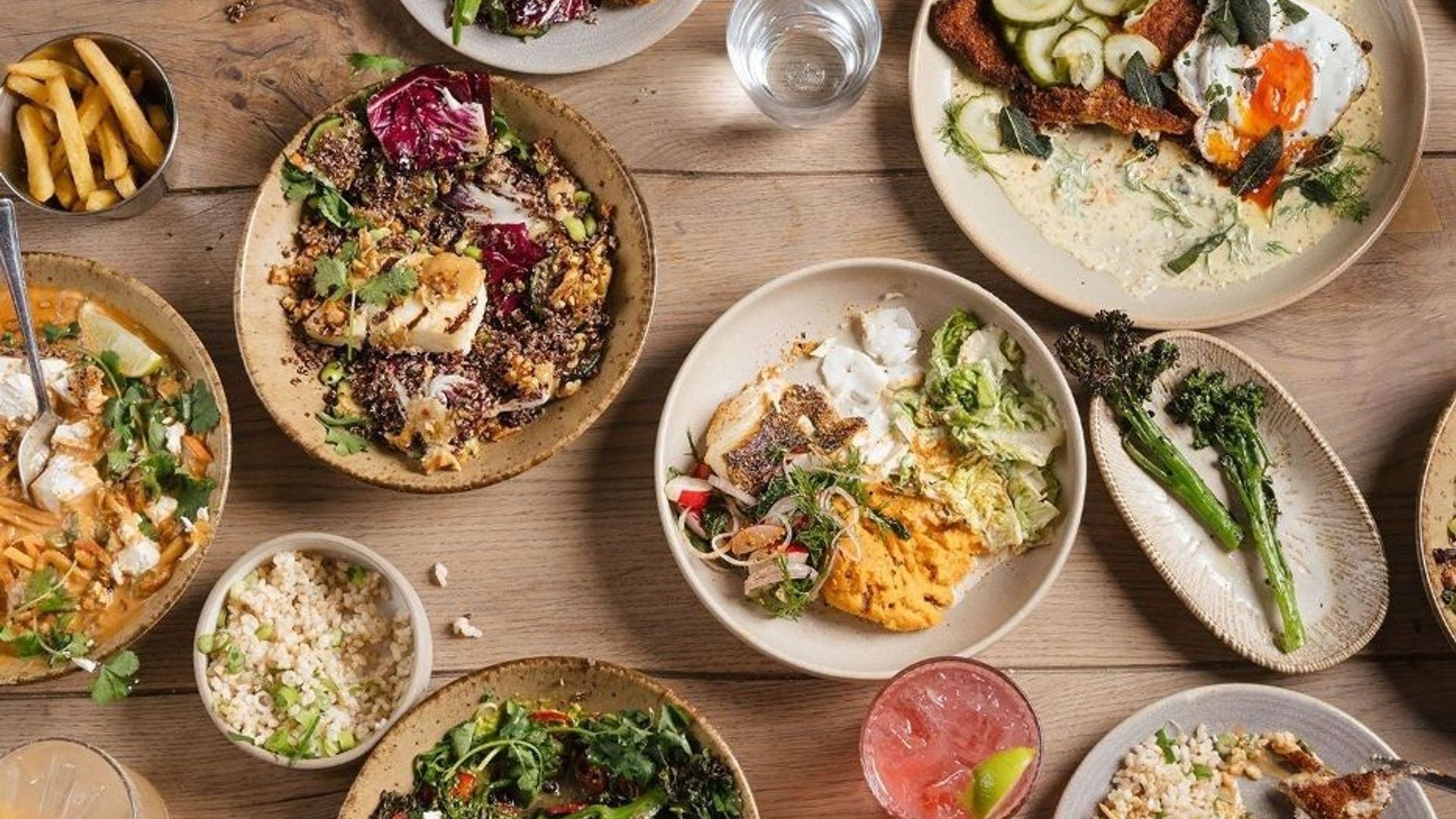 Fried rice, greens, fried egg, kimchi mayonnaise, sambal, crispy shallots, peanuts, coriander£16.50Burnt Stem Broccoli, Sweet Potato