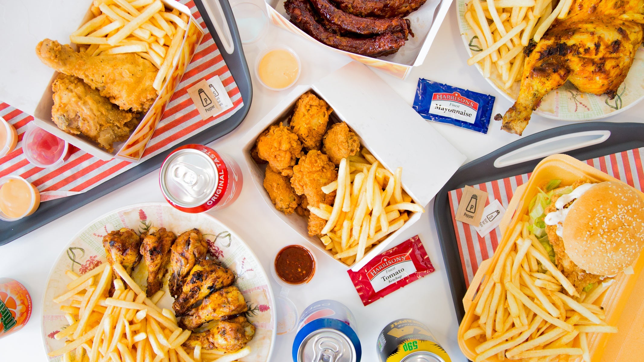 1 5pcs chicken, 15 wings, 6 fries, 1.5ltr bottle of drink (choice of drink- coke, pepsi, 7up)£36.99Cheese burger meal