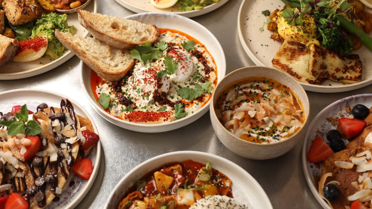 Banana and berries, maple syrup, coconut yoghurt, and lotus spread, lotus crumble and lotus biscuit£14.50VegetarianFree with £20 spendShakshuka