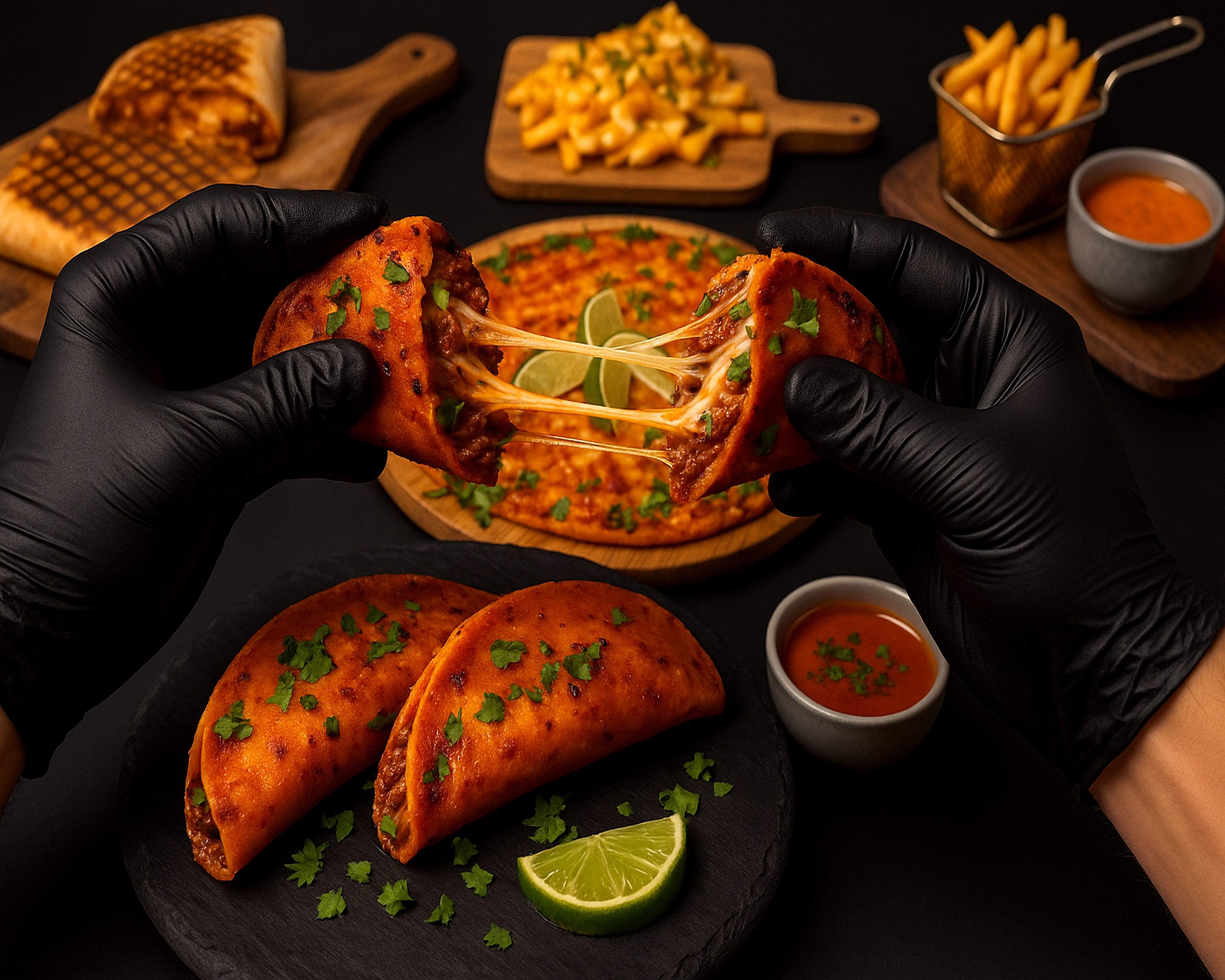 The Taco House offers an exciting twist on comfort food, including our unique French Tacos bursting with authentic Moroccan and Algerian flavours. You can also enjoy our delicious Mexican Birria Tacos, or try our one-of-a-kind Birria Pizza for a special treat. All our meat is Halal.Free delivery
