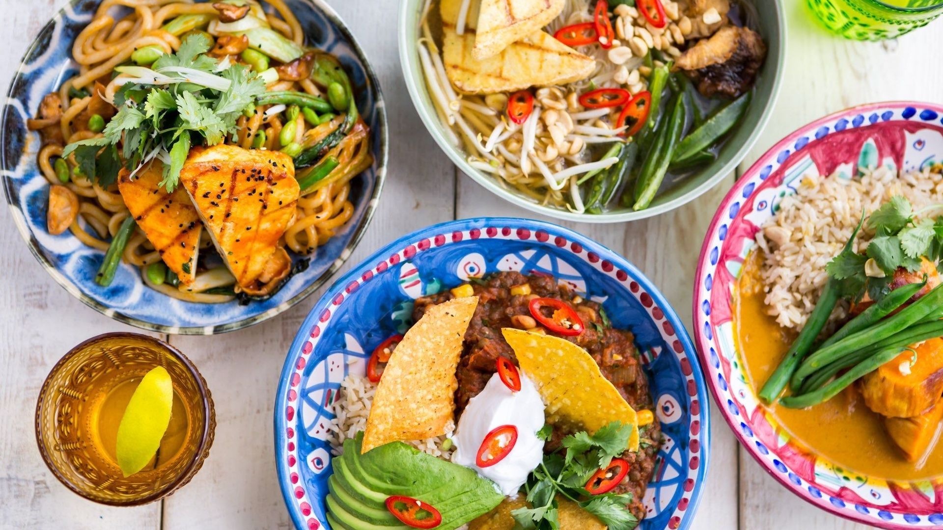 Egg noodles, bok choy, mushrooms, basil, edamame, chilli jam, crispy shallots, coriander, spring onion.£16.50California Halloumi Tacos