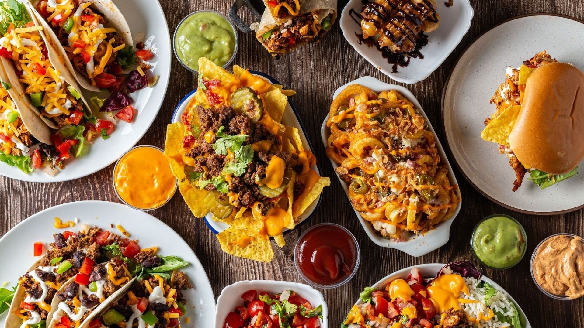 Crispy corn tortilla chips loaded with shredded cheese, queso, pickled jalapeno, fresh coriander, a choice of protein, and your choice of sauceContains: Milk, Soya0 kcal