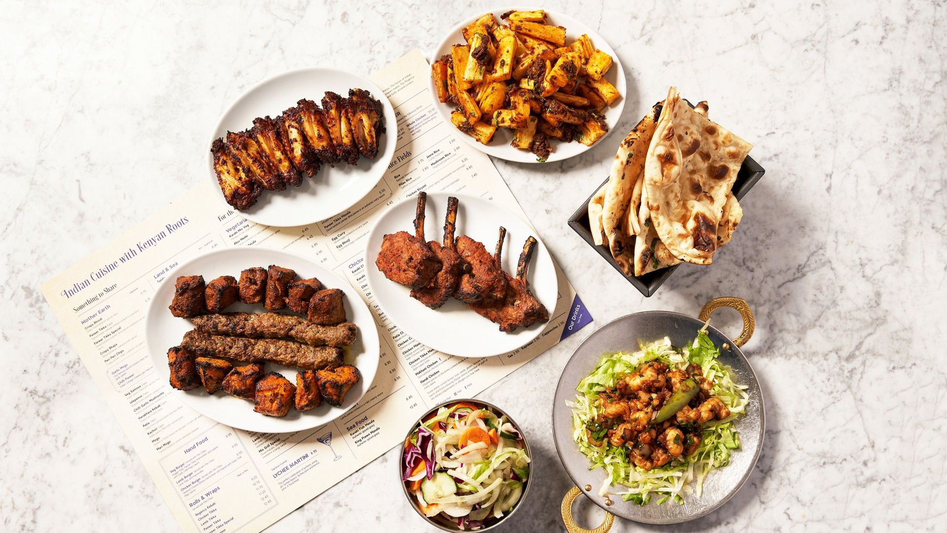 Chicken Tikka, Kebabs and Mushkaki£28.95Chicken Tikka
