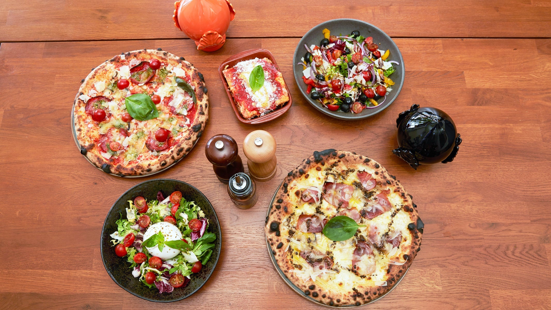 Tomato 🍅 sauce, mozzarella, speck, spicy salami, prosciutto ham.£18.60Margherita