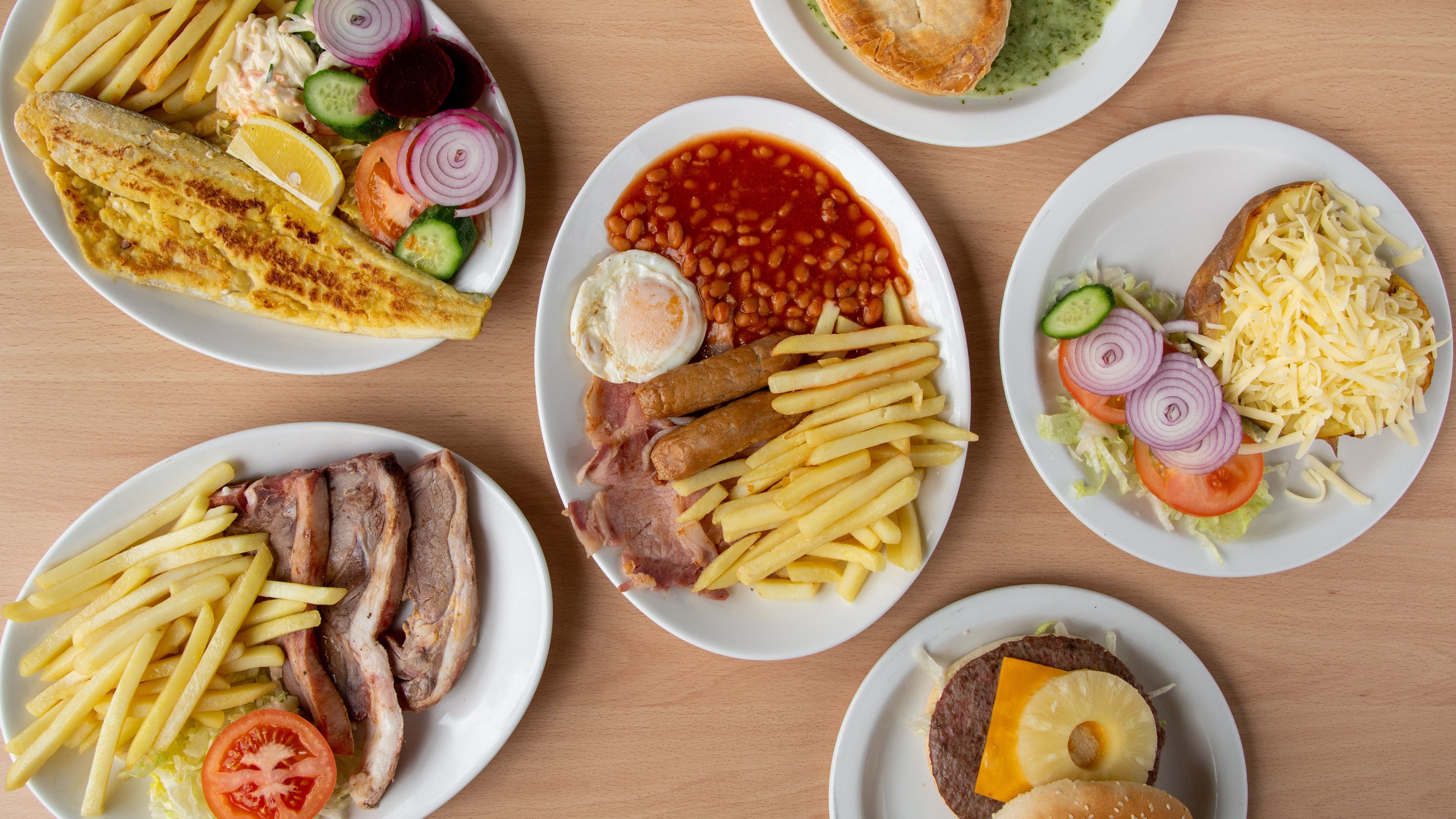 Fried egg, chips, peas and pineapple.£16.95Liver and Bacon