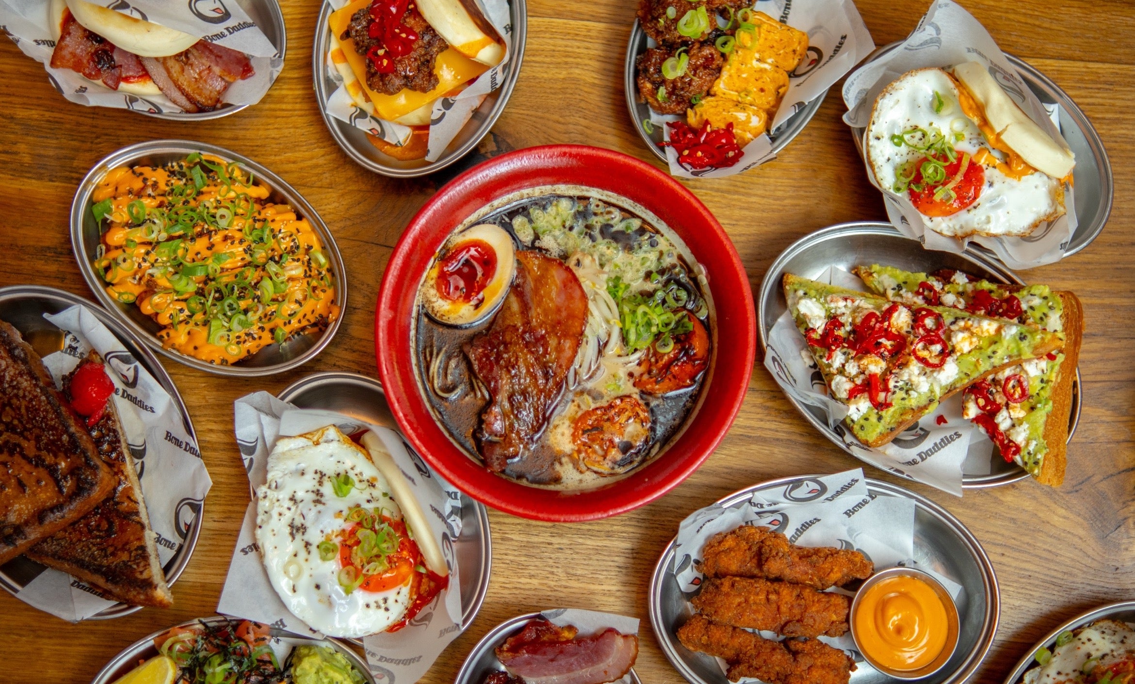 Wake the @#$&! UP! We’ve only gone and built a breakfast that actually makes mornings worth it. Bao buns stuffed with brown sugar bacon + egg, hot honey chicken, tamagoyaki pots, strawberry sandos, matcha lattes, and yep – a full-blown breakfast ramen!