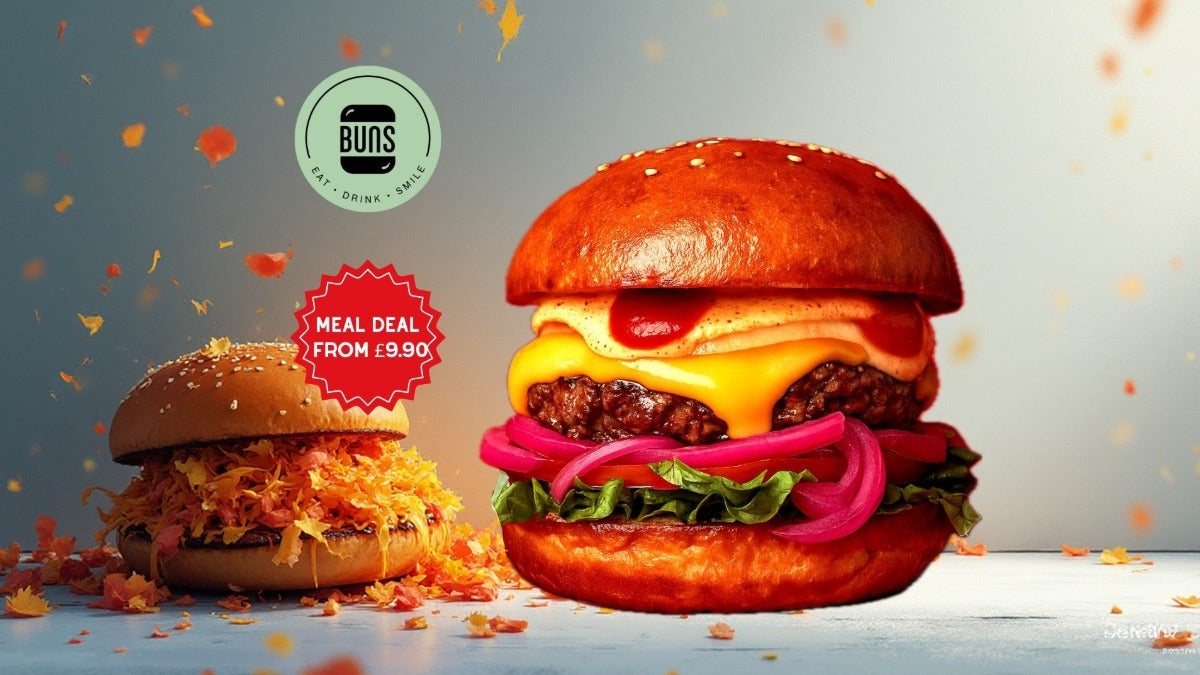 😎 EAT, DRINK & SMILE IS OUR MOTTO 😎 Between Buns’ two pillowy brioche buns are some of the most inventive & iconic fillings you’ll find on any burger menu! Whilst the succulent Free-range Chicken options are finger licking good, the hearty, honest & so damn satisfying pink juicy Burgers are hand pressed with 21 day Dry-Aged premium cuts of British beef.Free delivery