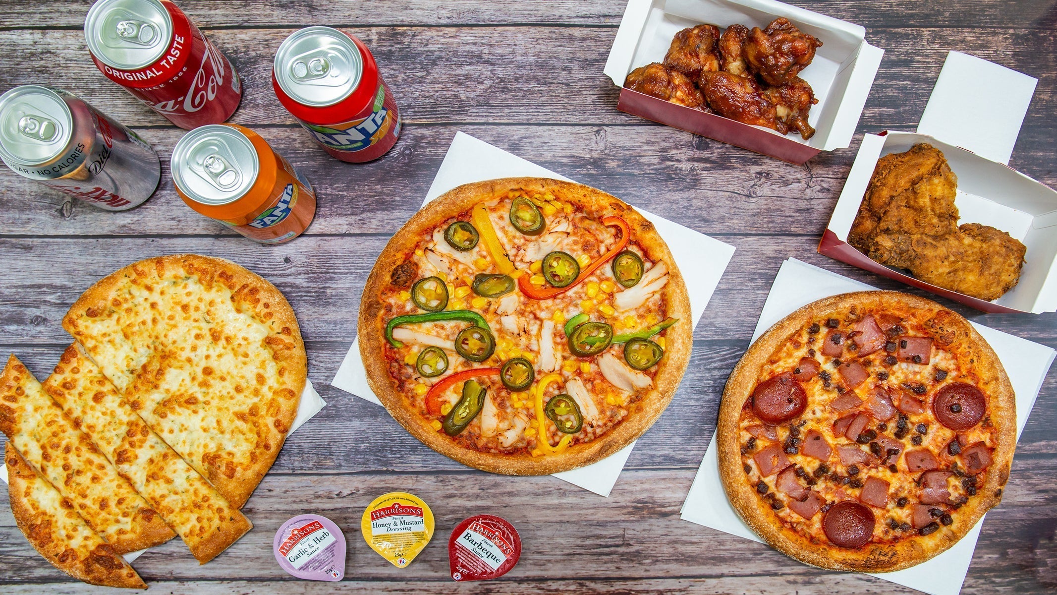 - Double Up Large 16" Any 2 pizzas, 1 garlic pizza stick and a large bottle of drink.£36.99