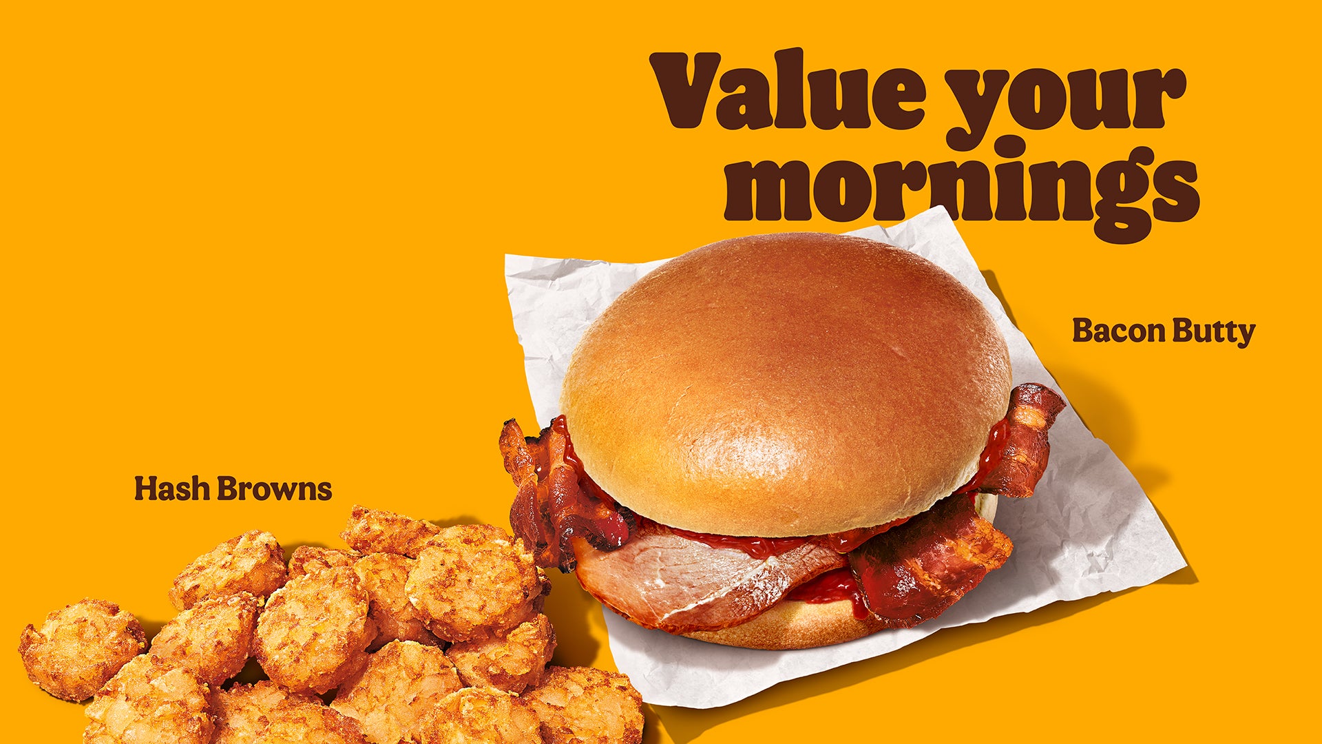 Sausage patty served in a brioche bun with ketchup or brown sauce.£4.59Bacon & Egg Butty Meal